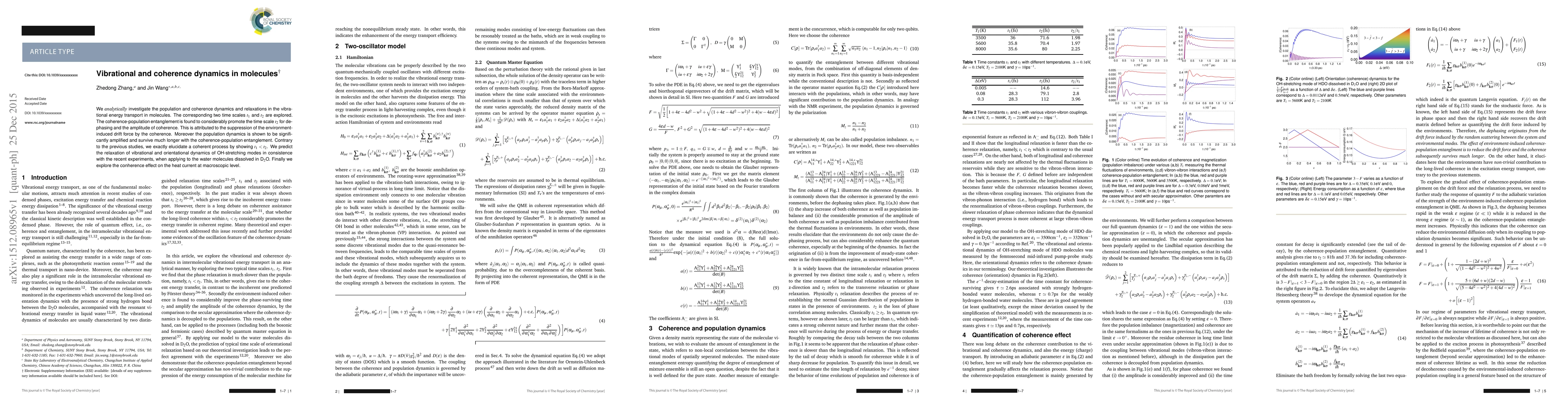 Researchers investigate how coherence in molecules affects vibrational energy transport, finding that it promotes relaxation and amplifies population imbalance. They predict a coherent process with two time scales and agree with recent experiments on water molecules.