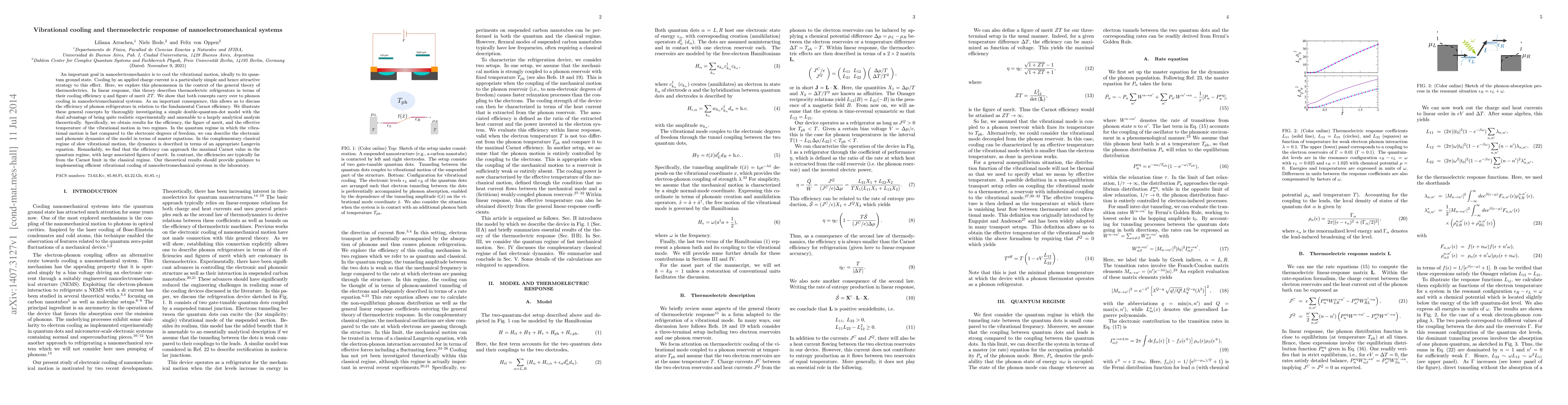 The paper presents a comprehensive theoretical framework for understanding and optimizing vibrational cooling in nanoelectromechanical systems, integrating concepts from thermoelectrics and nanoelectromechanics.