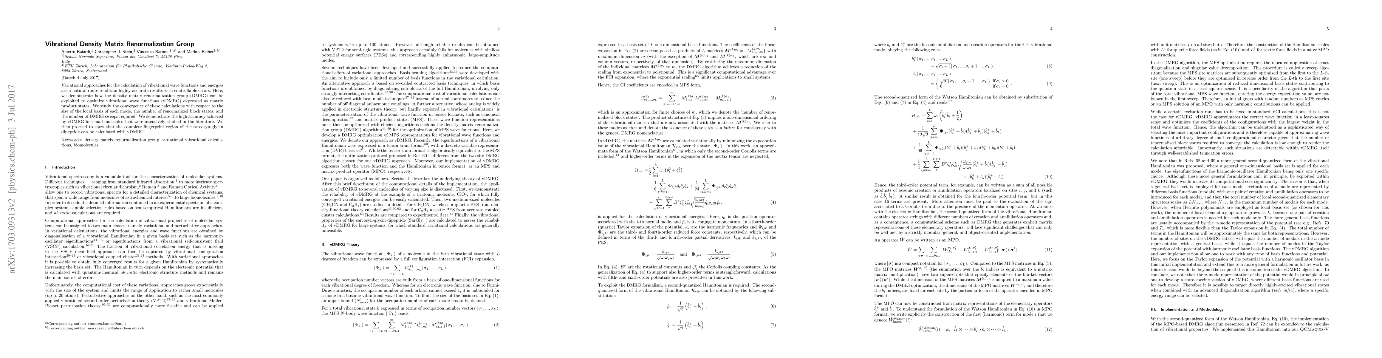 Researchers used Density Matrix Renormalization Group (DMRG) to calculate vibrational wave functions and energies with high accuracy for small molecules, overcoming computational costs of traditional methods.