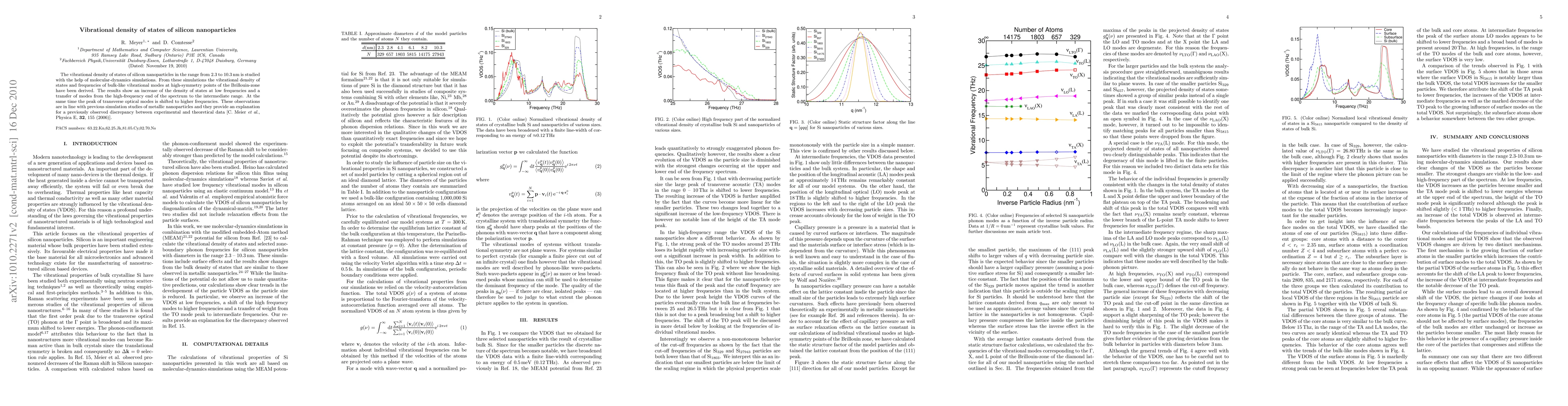 This research uses molecular-dynamics simulations to study silicon nanoparticle vibrational density of states, revealing an increase in low-frequency modes and mode frequency shifts towards intermediate frequencies. These findings explain discrepancies between prior experimental and theoretical data.