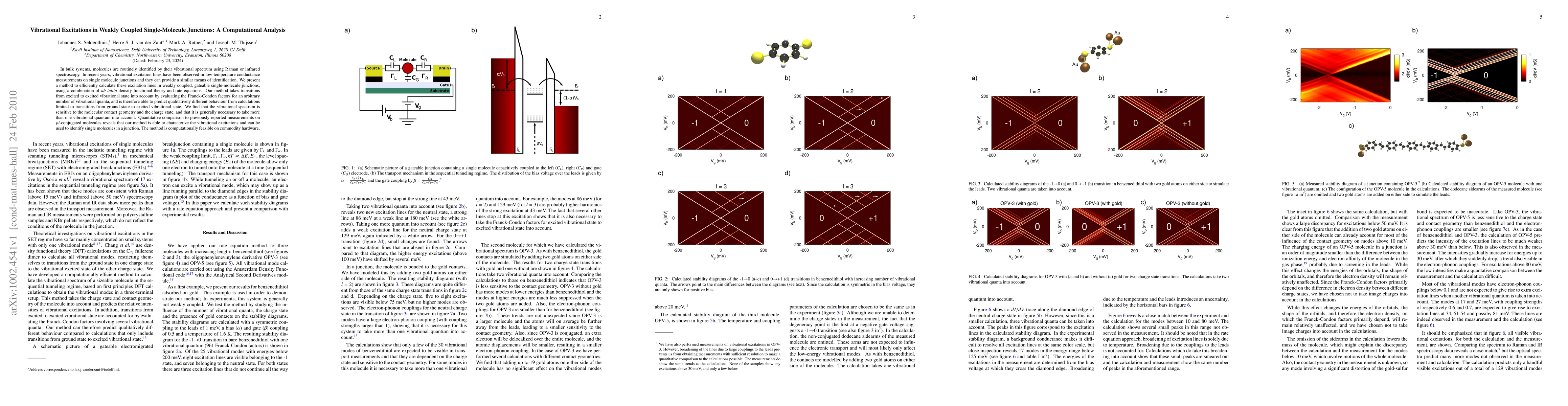 The research uses a combination of ab initio density functional theory and rate equations to efficiently calculate vibrational excitation lines in weakly coupled, gateable single-molecule junctions, considering transitions from excited to excited vibrational states.