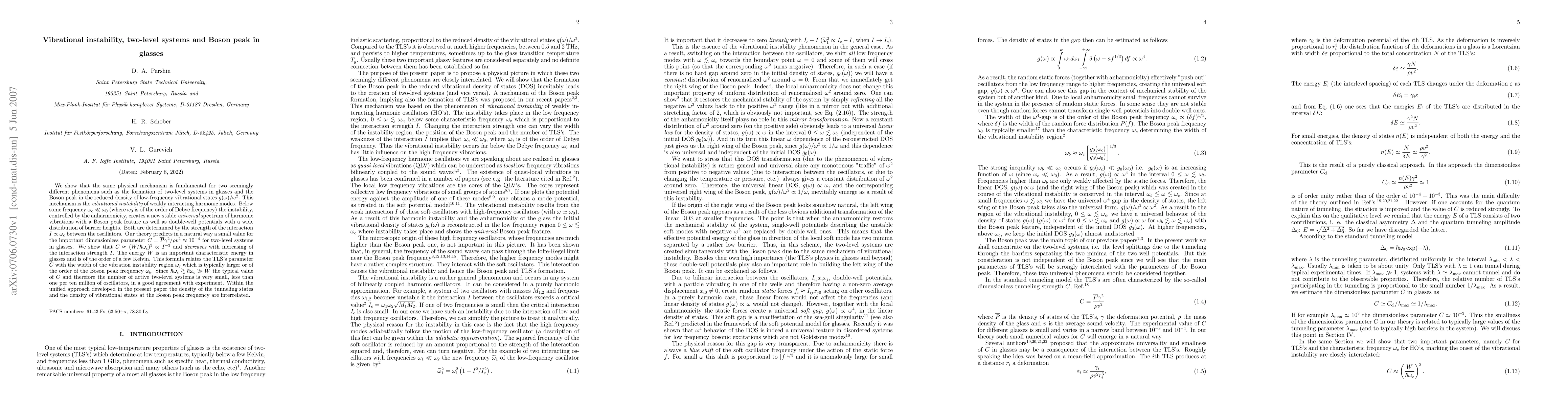 This paper identifies vibrational instability in weakly interacting harmonic modes as the underlying mechanism for the formation of two-level systems in glasses and the Boson peak phenomenon. The theory predicts a small dimensionless parameter value and shows the number of active two-level systems aligns well with experimental data.