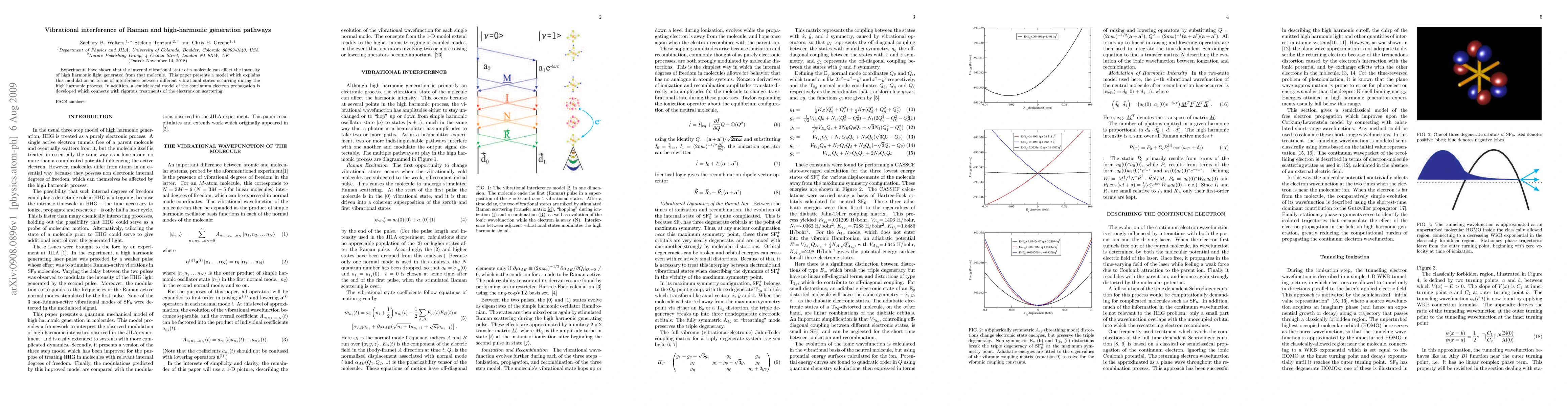 A model explains how the internal vibrational state of a molecule affects high harmonic light intensity through interference between different states. A continuum electron propagation model is also developed to connect with rigorous treatments of electron-ion scattering.