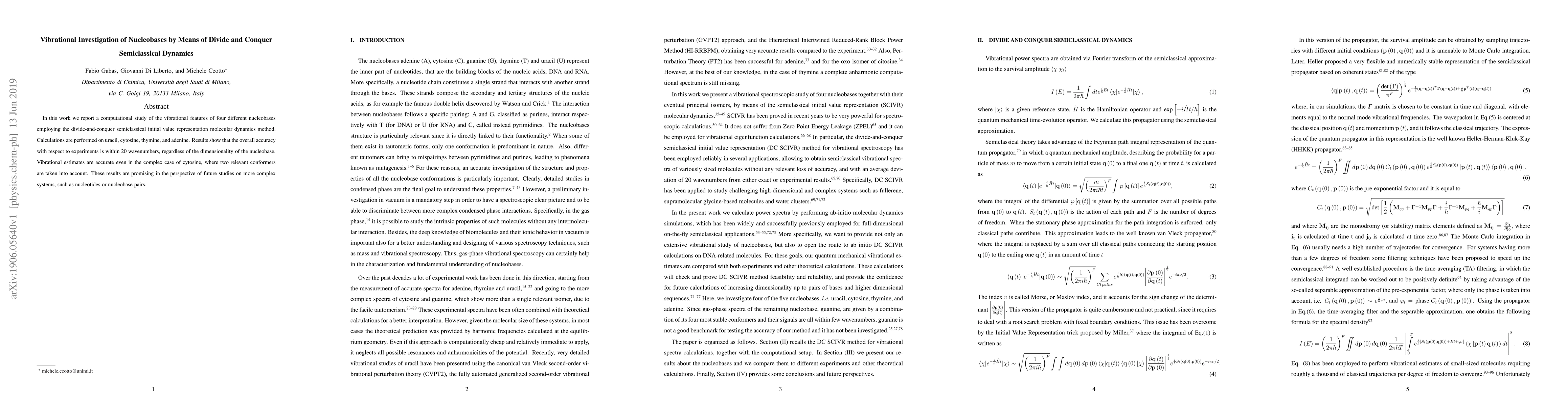 This study uses divide-and-conquer semiclassical dynamics to investigate the vibrational features of four nucleobases: uracil, cytosine, thymine, and adenine. The method yields vibrational estimates accurate within 20 wavenumbers, even for complex conformers like cytosine.