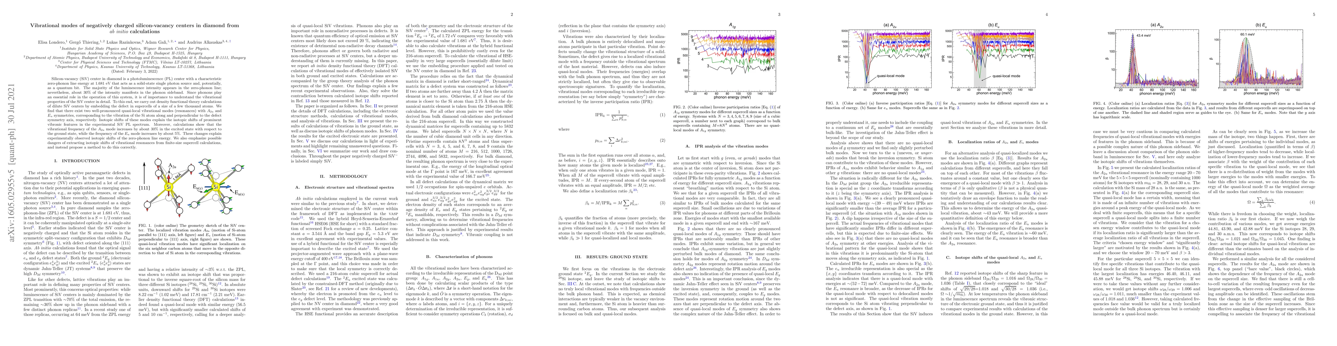 This paper uses density functional theory to investigate the vibrational modes of negatively charged silicon-vacancy centers in diamond, identifying two prominent quasi-local modes with $A_{2u}$ and $E_u$ symmetries. The study reveals significant frequency changes in these modes between the ground and excited states, explaining observed isotopic shifts in the photoluminescence spectrum.