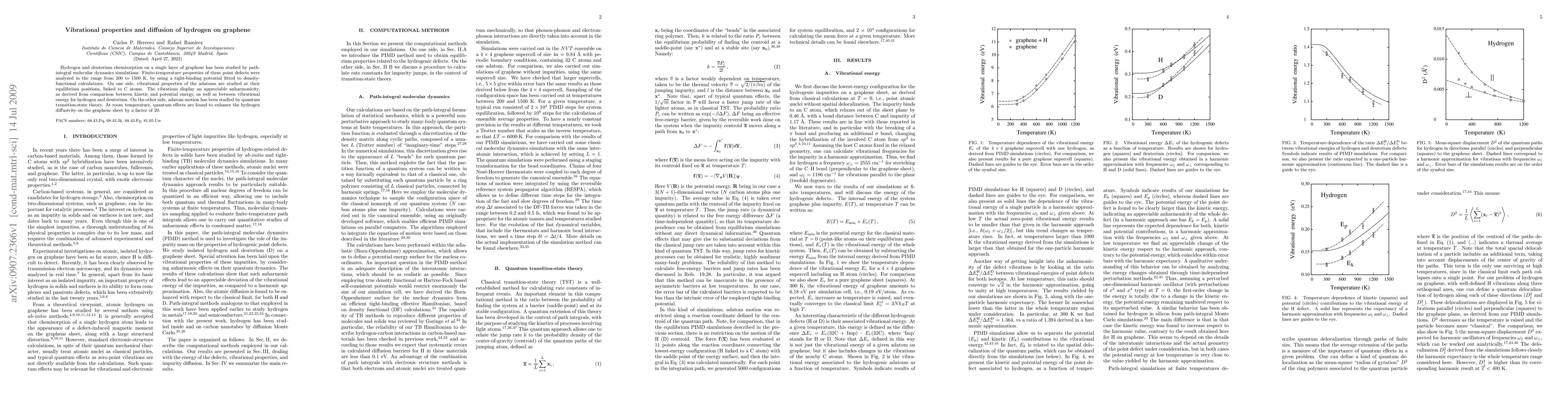 This study explores the vibrational properties and diffusion behavior of hydrogen and deuterium on graphene via path-integral molecular dynamics simulations. It reveals significant anharmonicity in the vibrational modes and finds quantum effects to enhance hydrogen diffusivity by a factor of 20 at room temperature.