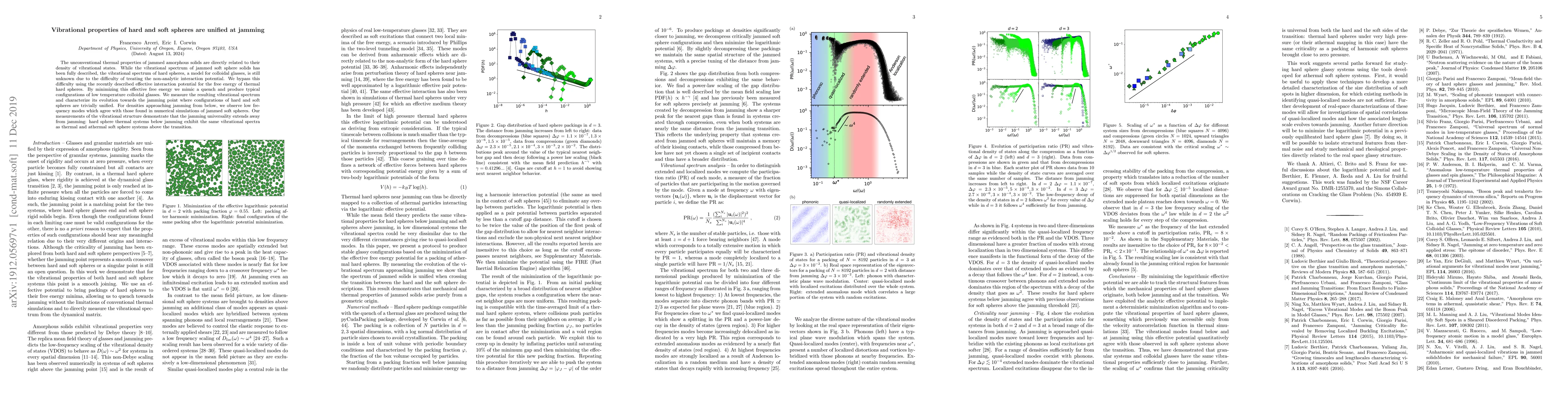 This paper investigates the vibrational properties of jammed amorphous solids, showing that hard and soft spheres exhibit unified vibrational spectra near the jamming point. By using an effective interaction potential, the study reveals that low-frequency modes in hard spheres align with those in jammed soft spheres, indicating a universality in vibrational behavior across different sphere types.