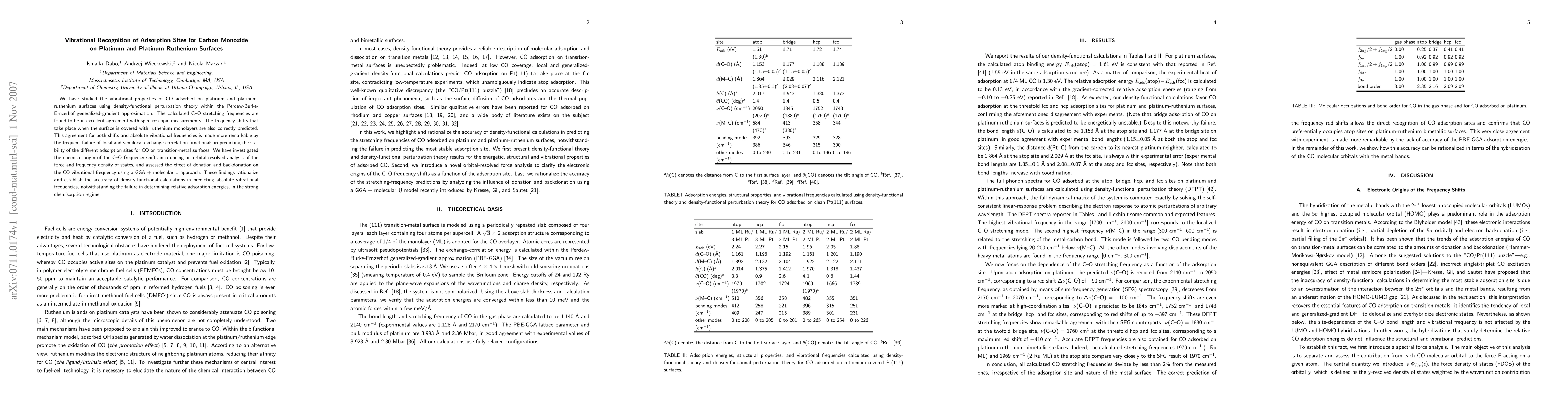 We have studied the vibrational properties of CO adsorbed on platinum and platinum-ruthenium surfaces using density-functional perturbation theory within the Perdew-Burke-Ernzerhof generalized-gradient approximation. The calculated C-O stretching frequencies are found to be in excellent agreement with spectroscopic measurements. The frequency shifts that take place when the surface is covered with ruthenium monolayers are also correctly predicted. This agreement for both shifts and absolute vibrational frequencies is made more remarkable by the frequent failure of local and semilocal exchange-correlation functionals in predicting the stability of the different adsorption sites for CO on transition metal surfaces. We have investigated the chemical origin of the C-O frequency shifts introducing an orbital-resolved analysis of the force and frequency density of states, and assessed the effect of donation and backdonation on the CO vibrational frequency using a GGA + molecular U approach. These findings rationalize and establish the accuracy of density-functional calculations in predicting absolute vibrational frequencies, notwithstanding the failure in determining relative adsorption energies, in the strong chemisorption regime.
