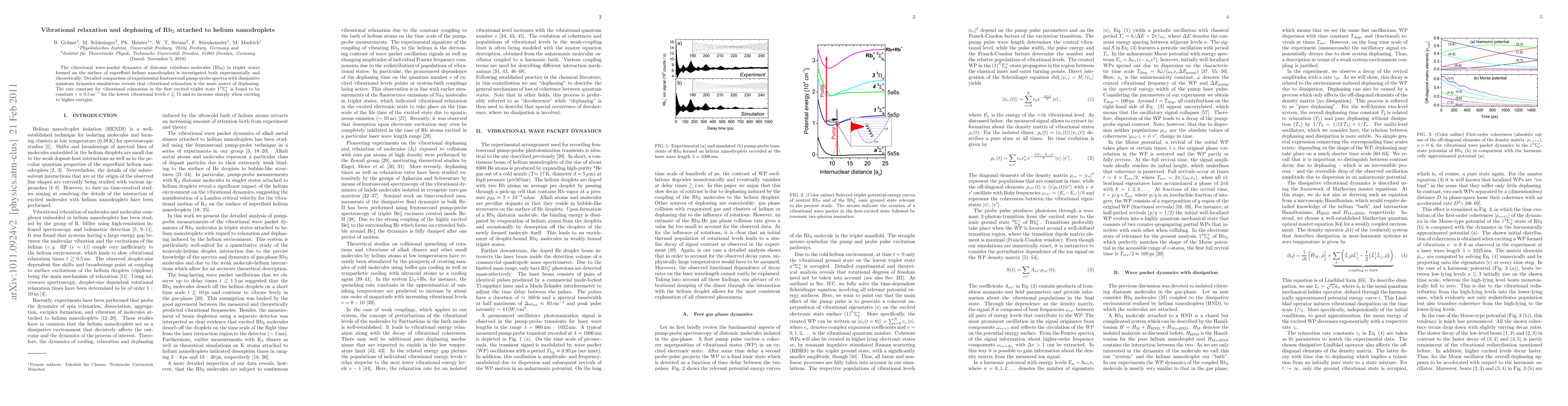The paper presents a comprehensive analysis of vibrational relaxation and dephasing in Rb2 molecules attached to helium nanodroplets, providing insights into the interaction between molecules and quantum environments.