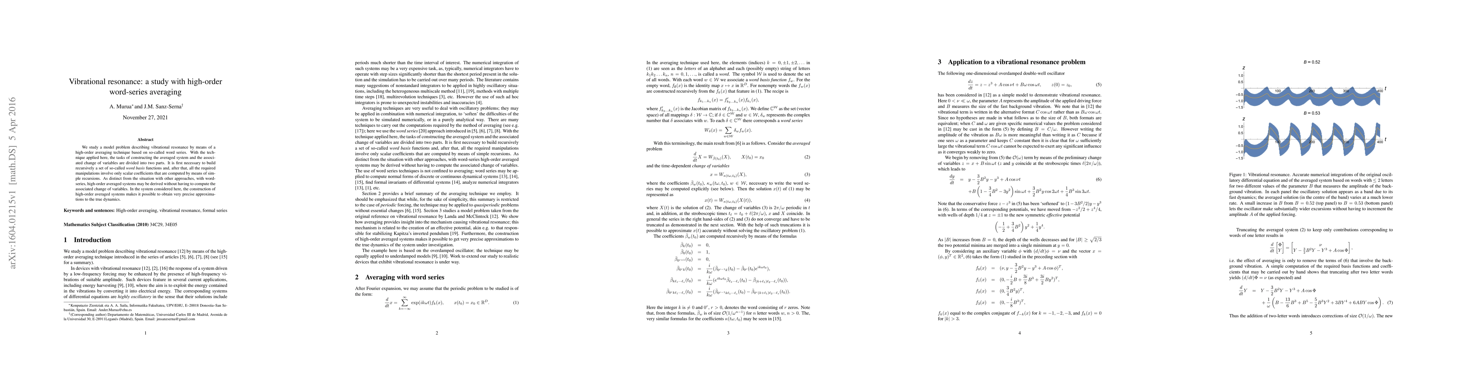 Researchers developed a method to study vibrational resonance using high-order word-series averaging, allowing for precise approximations of the true dynamics without computing complex change of variables.