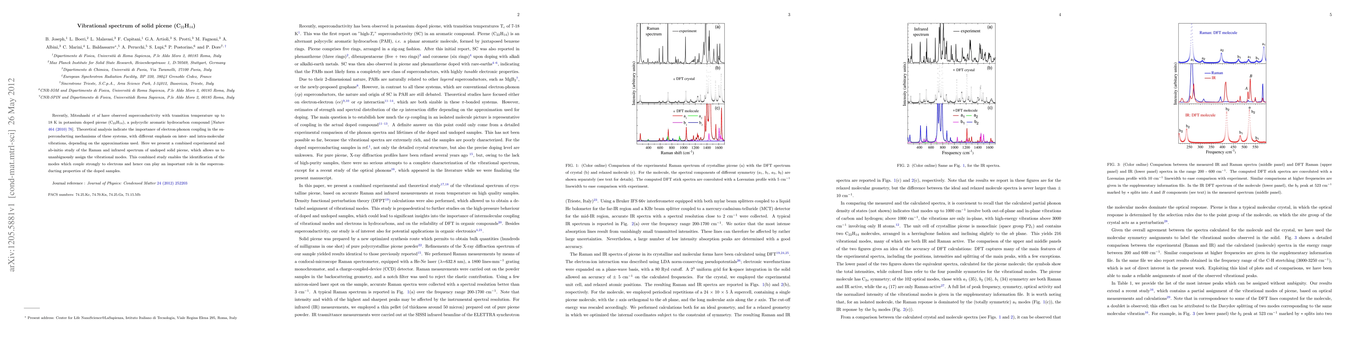 Recently, Mitsuhashi et al., have observed superconductivity with transition temperature up to 18 K in potassium doped picene (C22H14), a polycyclic aromatic hydrocarbon compound [Nature 464 (2010) 76]. Theoretical analysis indicate the importance of electron-phonon coupling in the superconducting mechanisms of these systems, with different emphasis on inter- and intra-molecular vibrations, depending on the approximations used. Here we present a combined experimental and ab-initio study of the Raman and infrared spectrum of undoped solid picene, which allows us to unanbiguously assign the vibrational modes. This combined study enables the identification of the modes which couple strongly to electrons and hence can play an important role in the superconducting properties of the doped samples.
