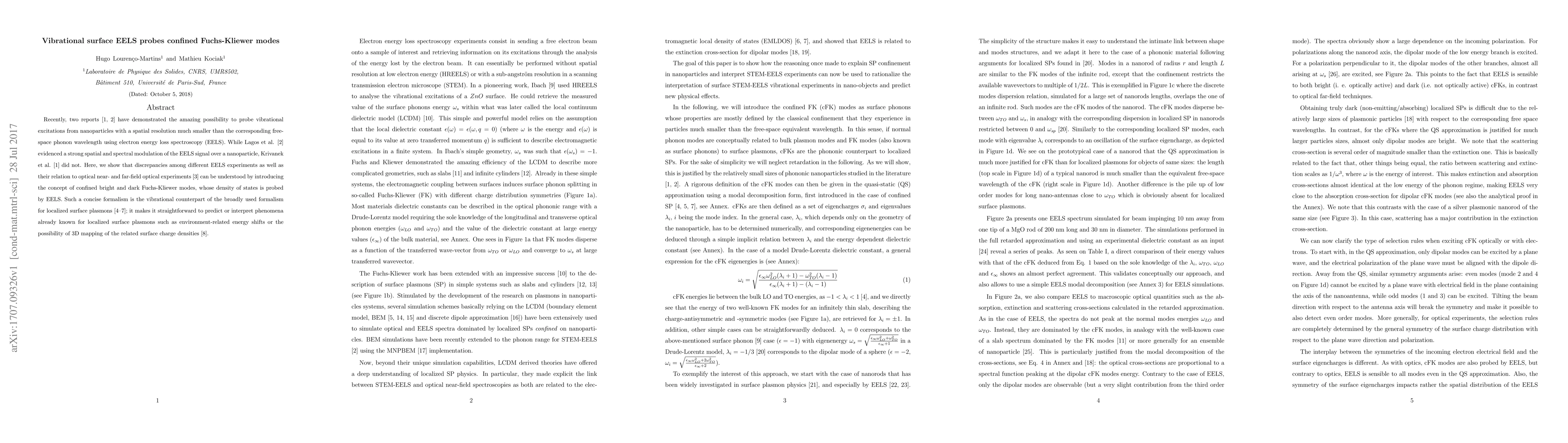 Researchers introduced a concept of confined Fuchs-Kliewer modes to explain discrepancies in vibrational surface EELS probes, enabling predictions of energy shifts and 3D mapping of surface charge densities.