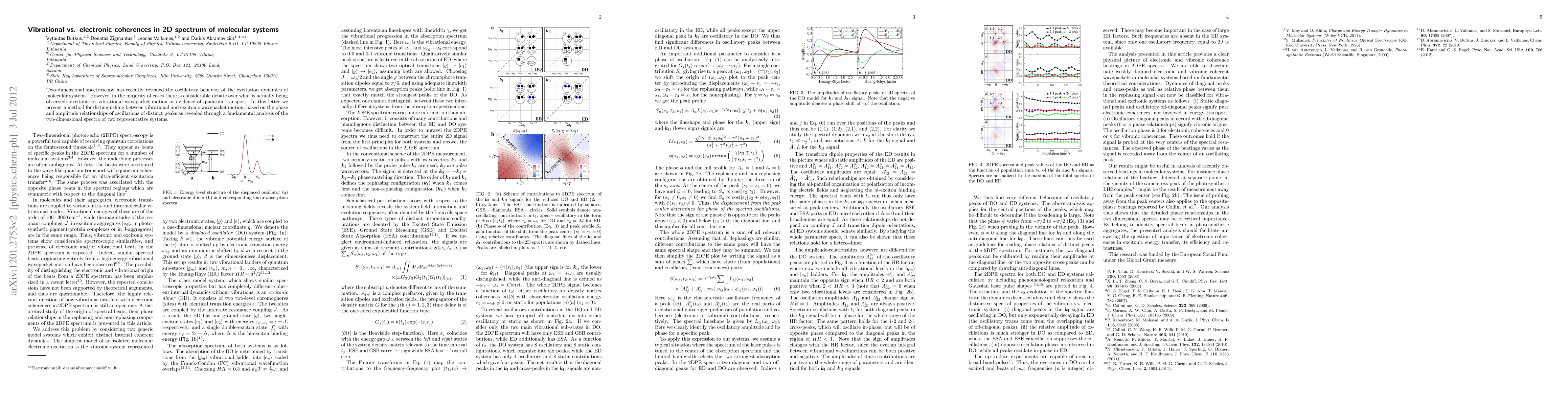 The two-dimensional spectroscopy has recently revealed oscillatory behavior of excitation dynamics in molecular systems. However, in the majority of cases it is strongly debated if excitonic or vibrational wavepackets, or evidences of quantum transport have been observed. In this letter, the method for distinguishing between vibrational and excitonic wavepacket motion is presented, based on the phase and amplitude relationships of oscillations of distinct peaks, which has been revealed using fundamental analysis of two-dimensional spectrum of two representative systems.