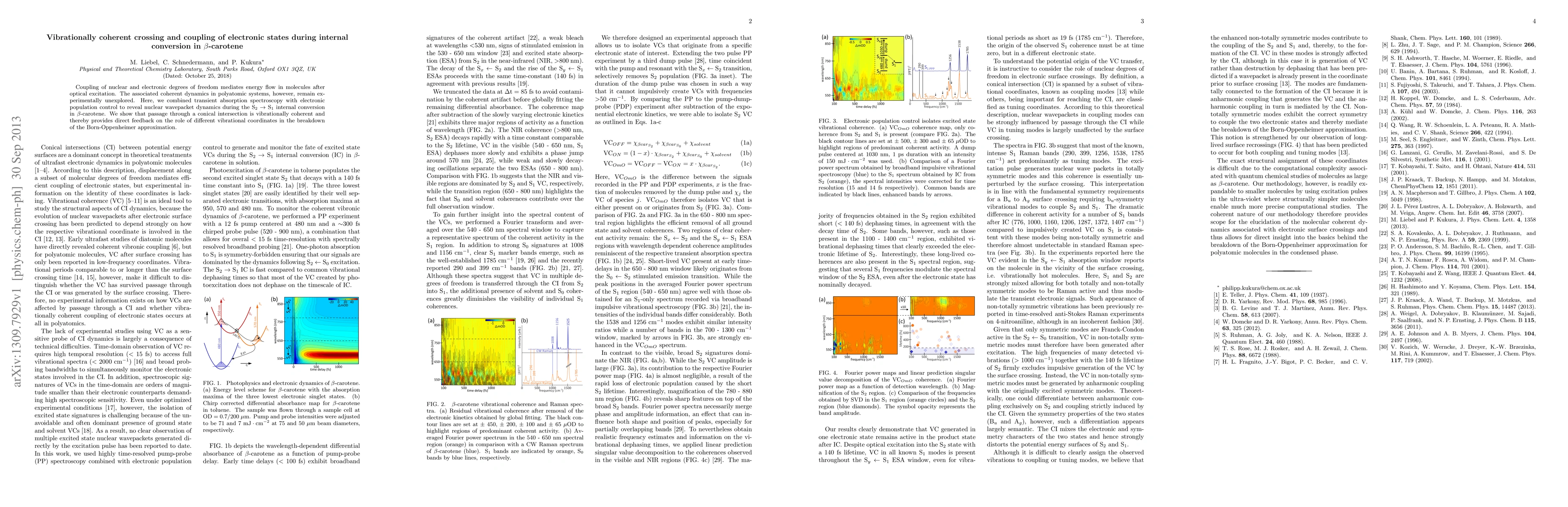 Coupling of nuclear and electronic degrees of freedom mediates energy flow in molecules after optical excitation. The associated coherent dynamics in polyatomic systems, however, remain experimentally unexplored. Here, we combined transient absorption spectroscopy with electronic population control to reveal nuclear wavepacket dynamics during the S2-S1 internal conversion in beta-carotene. We show that passage through a conical intersection is vibrationally coherent and thereby provides direct feedback on the role of different vibrational coordinates in the breakdown of the Born-Oppenheimer approximation.