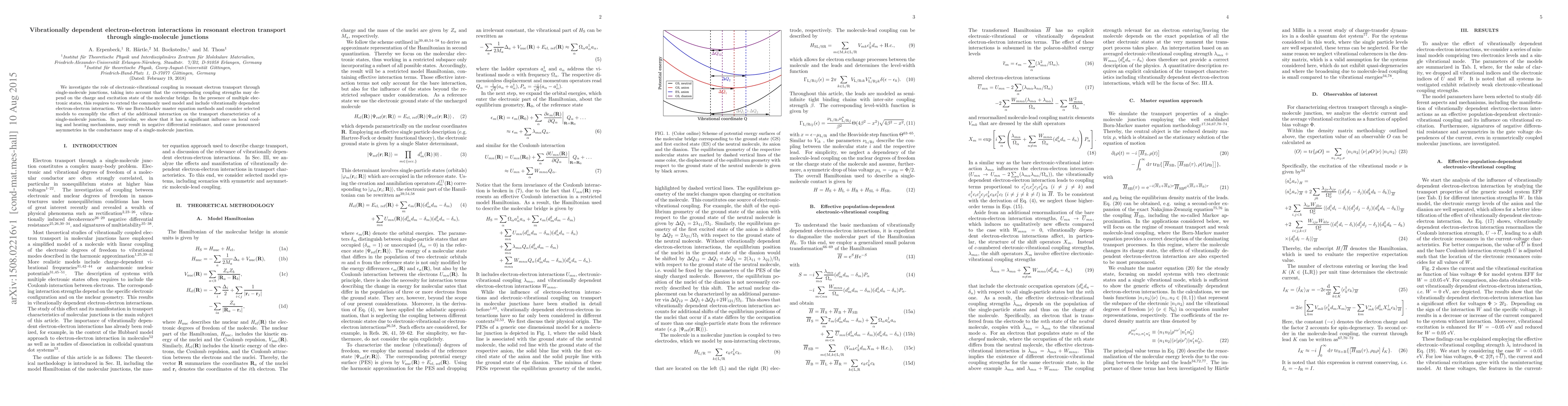 This study explores how vibrationally dependent electron-electron interactions impact electron transport through single-molecule junctions, showing significant effects on local cooling/heating, negative differential resistance, and conductance asymmetries. It extends existing models to include these interactions and uses Born-Markov master equation methods for analysis.