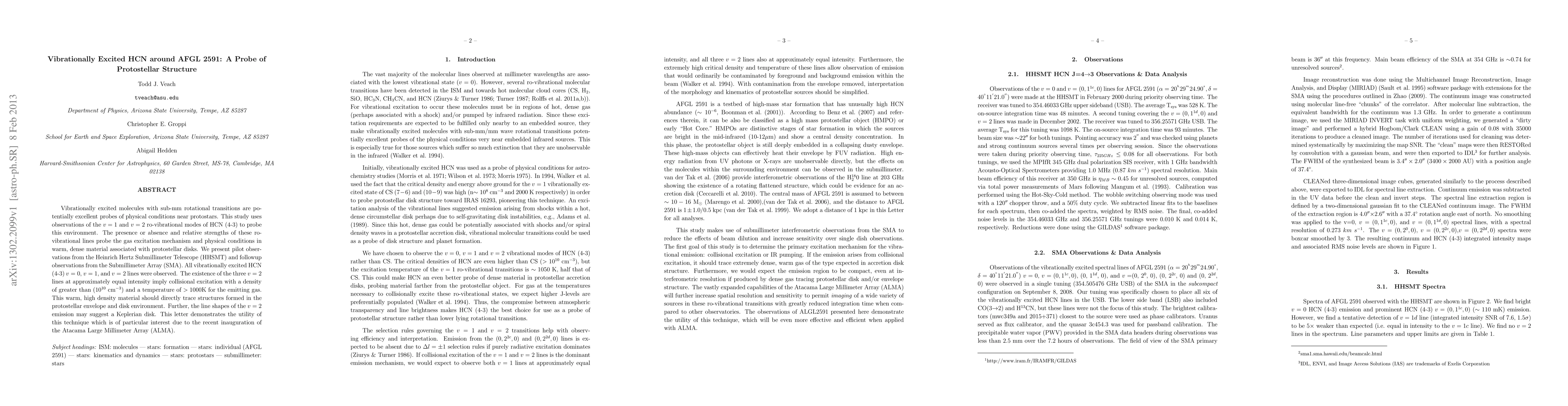 Researchers used observations of HCN molecules to probe physical conditions near protostars, finding evidence of warm, high-density material with temperatures above 1000K and densities greater than 10^10 cm^-3.