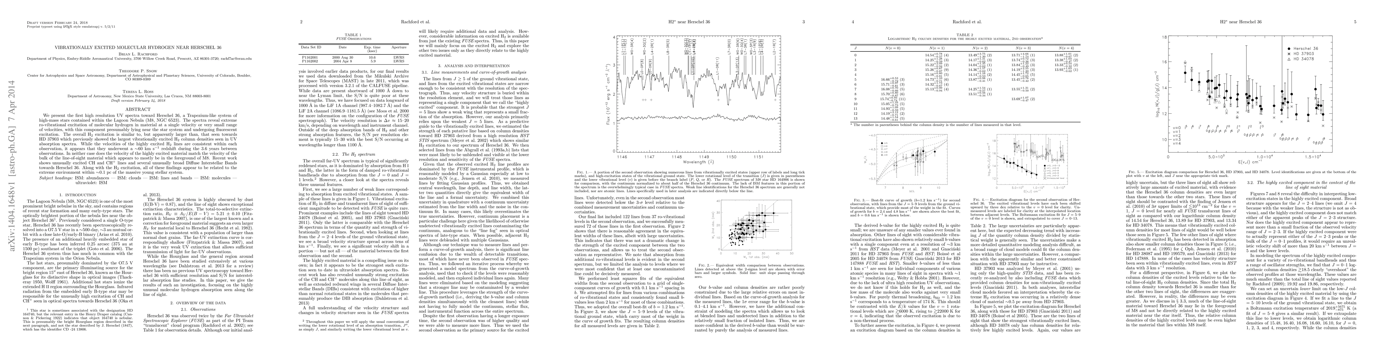 Researchers observed high-resolution UV spectra of molecular hydrogen near Herschel 36, a massive star system in the Lagoon Nebula, revealing extreme ro-vibrational excitation.