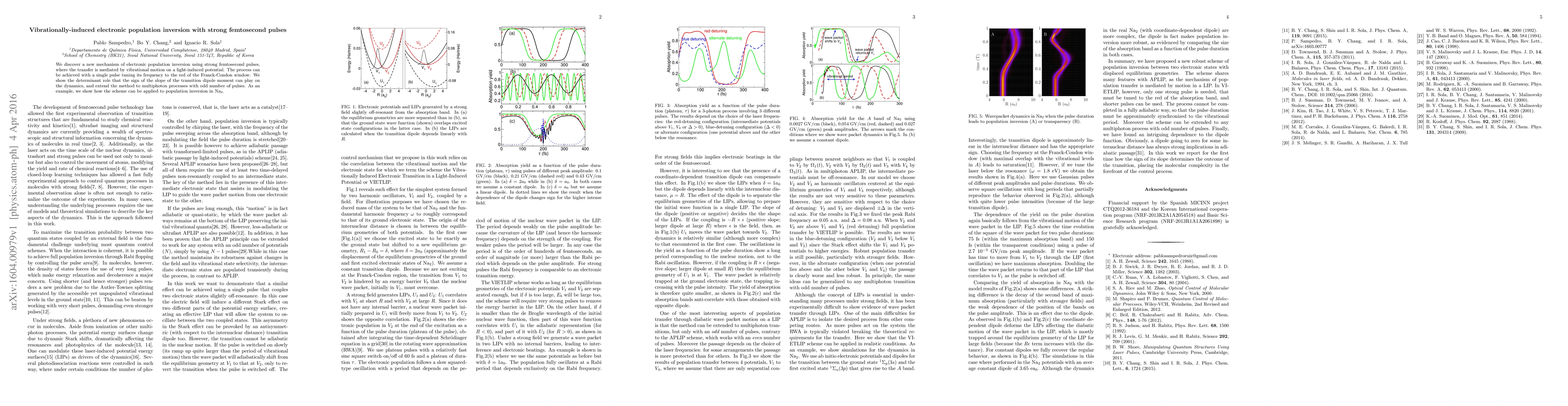 We discover a new mechanism of electronic population inversion using strong femtosecond pulses, where the transfer is mediated by vibrational motion on a light-induced potential. The process can be achieved with a single pulse tuning its frequency to the red of the Franck-Condon window. We show the determinant role that the sign of the slope of the transition dipole moment can play on the dynamics, and extend the method to multiphoton processes with odd number of pulses. As an example, we show how the scheme can be applied to population inversion in Na2.