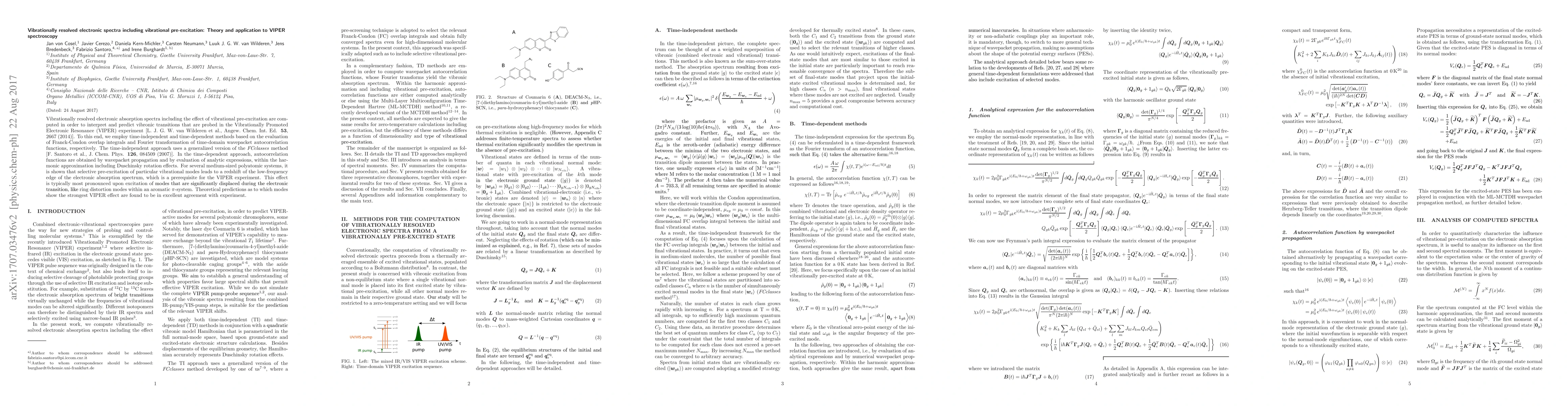 The study develops a theoretical framework to predict vibrational pre-excitation effects on electronic absorption spectra in VIPER spectroscopy, showing promising agreement with experimental results.