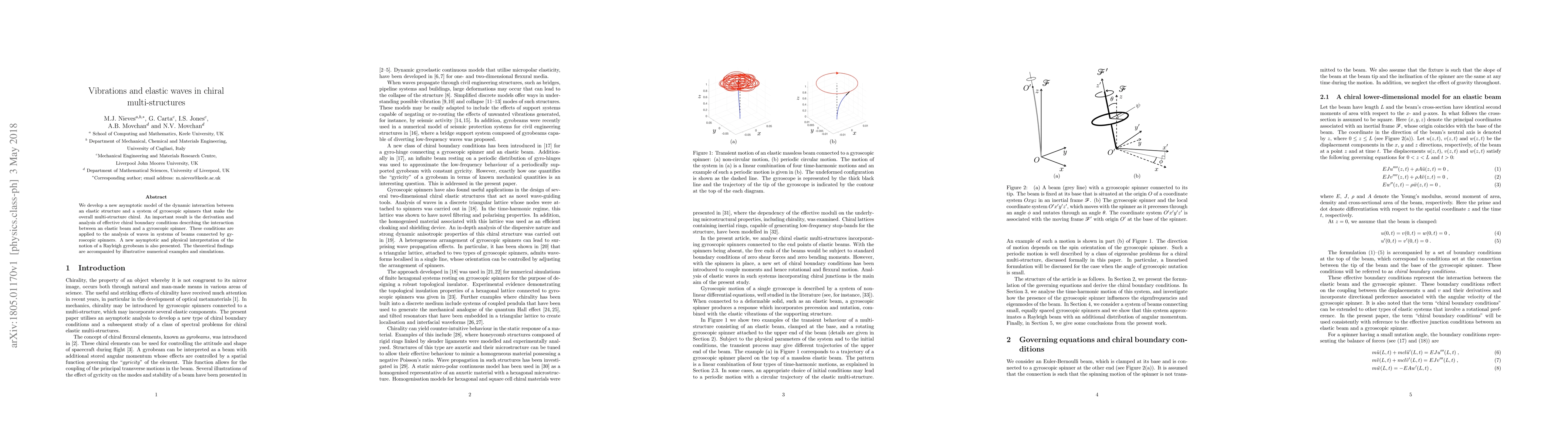 We develop a new asymptotic model of the dynamic interaction between an elastic structure and a system of gyroscopic spinners that make the overall multi-structure chiral. An important result is the derivation and analysis of effective chiral boundary conditions describing the interaction between an elastic beam and a gyroscopic spinner. These conditions are applied to the analysis of waves in systems of beams connected by gyroscopic spinners. A new asymptotic and physical interpretation of the notion of a Rayleigh gyrobeam is also presented. The theoretical findings are accompanied by illustrative numerical examples and simulations.