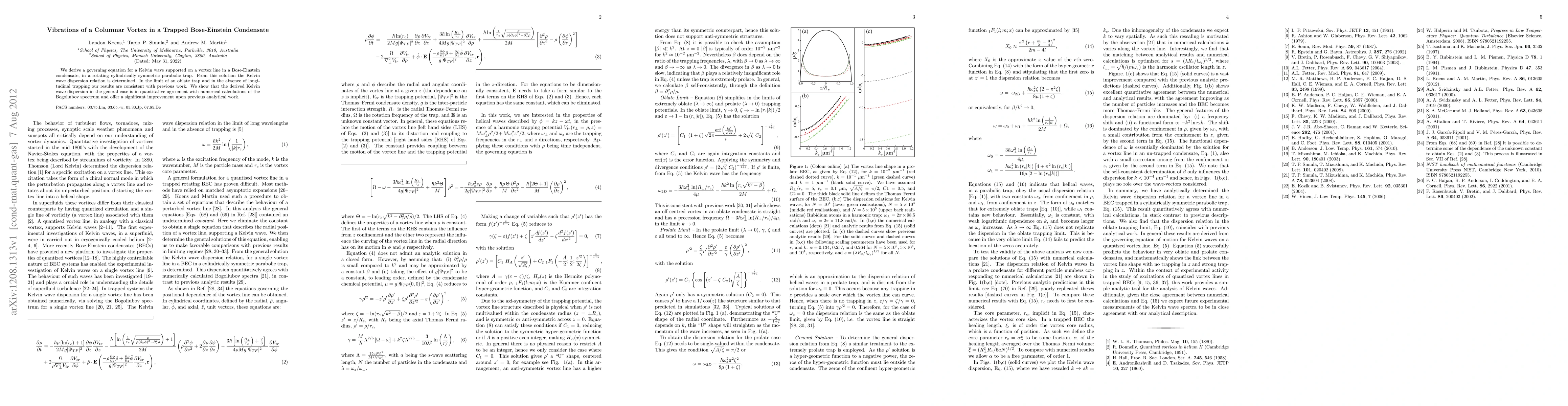 Researchers derived a governing equation for a Kelvin wave in a trapped Bose-Einstein condensate, improving upon previous work with quantitative agreement to numerical calculations.