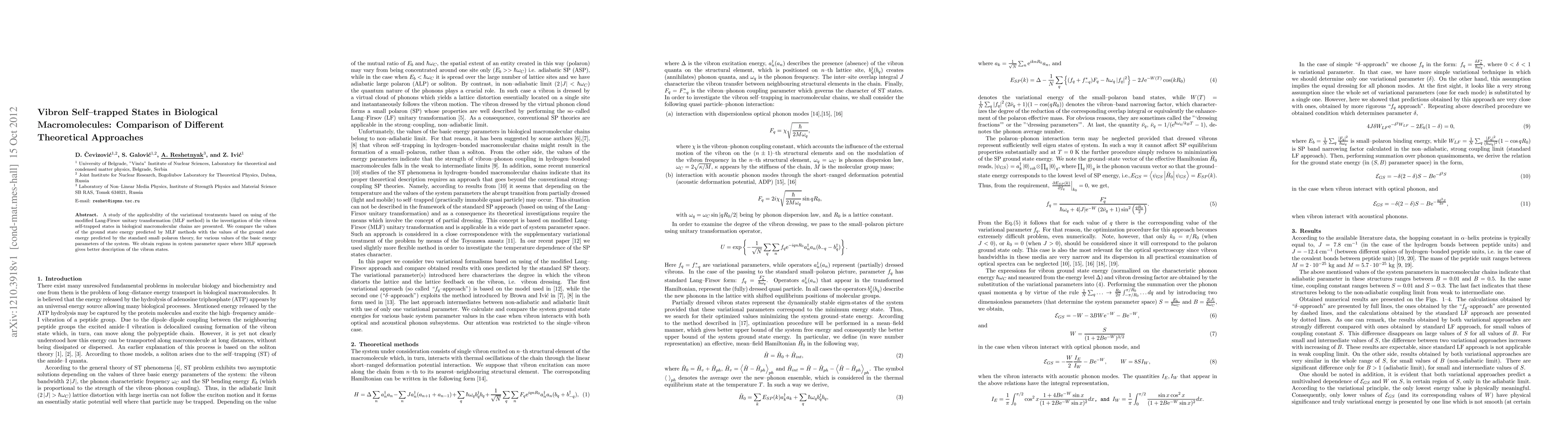A study of the applicability of the variational treatments based on using of the modified Lang-Firsov unitary transformation (MLF method) in the investigation of the vibron self-trapped states in biological macromolecular chains are presented. We compare the values of the ground state energy predicted by MLF methods with the values of the ground state energy predicted by the standard small-polaron theory, for various values of the basic energy parameters of the system. We obtain regions in system parameter space where MLF approach gives better description of the vibron states.