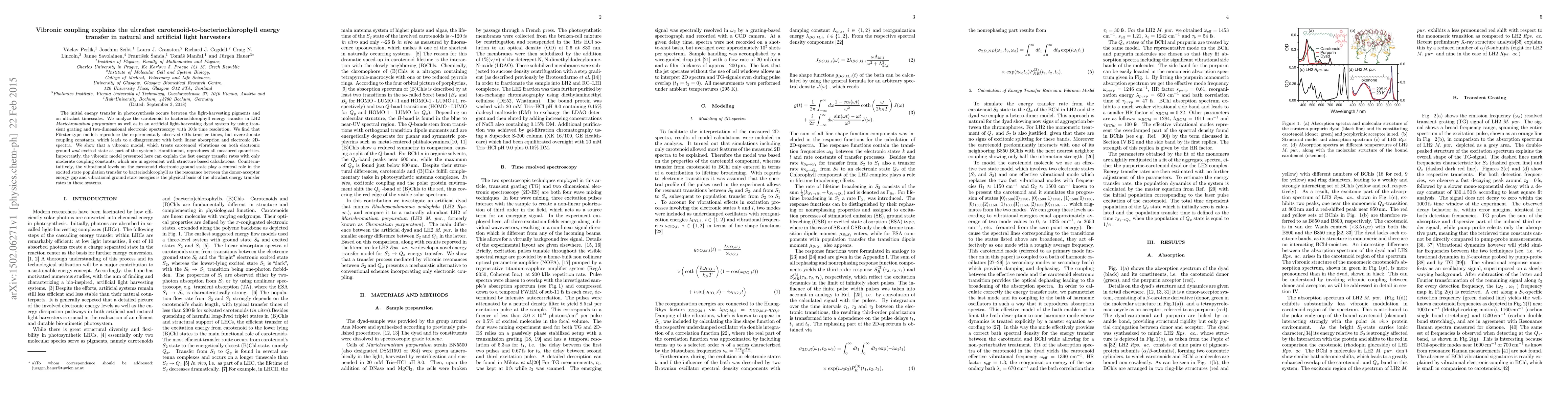 This paper demonstrates that vibronic coupling, considering the vibrations of carotenoid molecules in both ground and excited states, accurately explains the ultrafast energy transfer from carotenoids to bacteriochlorophyll in natural and artificial light-harvesting systems, resolving discrepancies observed in F\"orster-type models. The study highlights the crucial role of carotenoid ground state vibrations in facilitating rapid energy transfer.