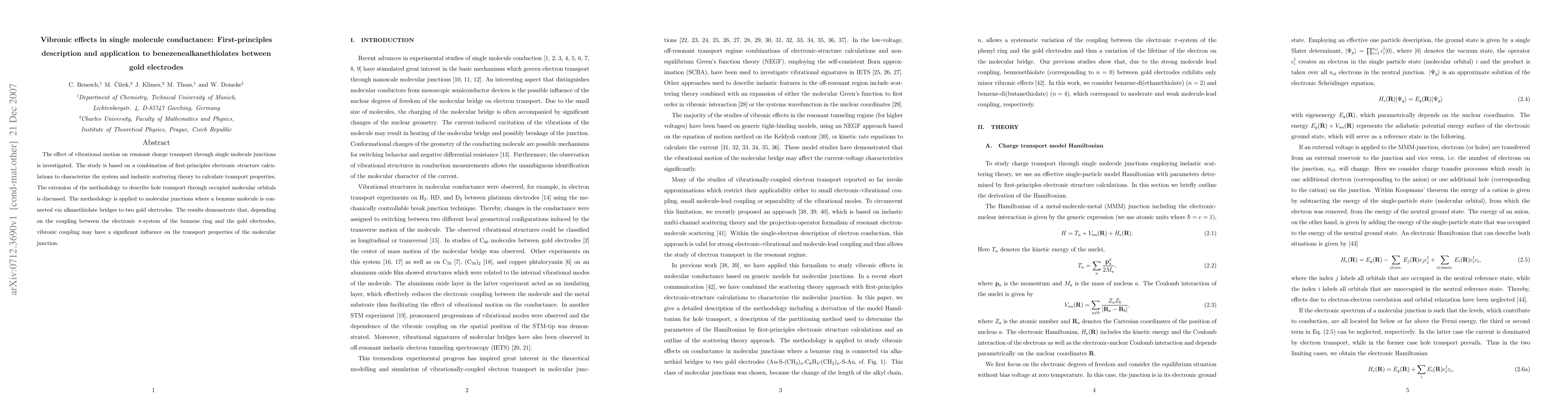 This paper investigates the impact of vibrational motion on charge transport through single molecule junctions using first-principles calculations and inelastic scattering theory. It applies the methodology to benzene-alkanethiol molecules between gold electrodes, showing that vibronic coupling can significantly affect transport properties depending on the electronic coupling between the benzene ring and the electrodes.