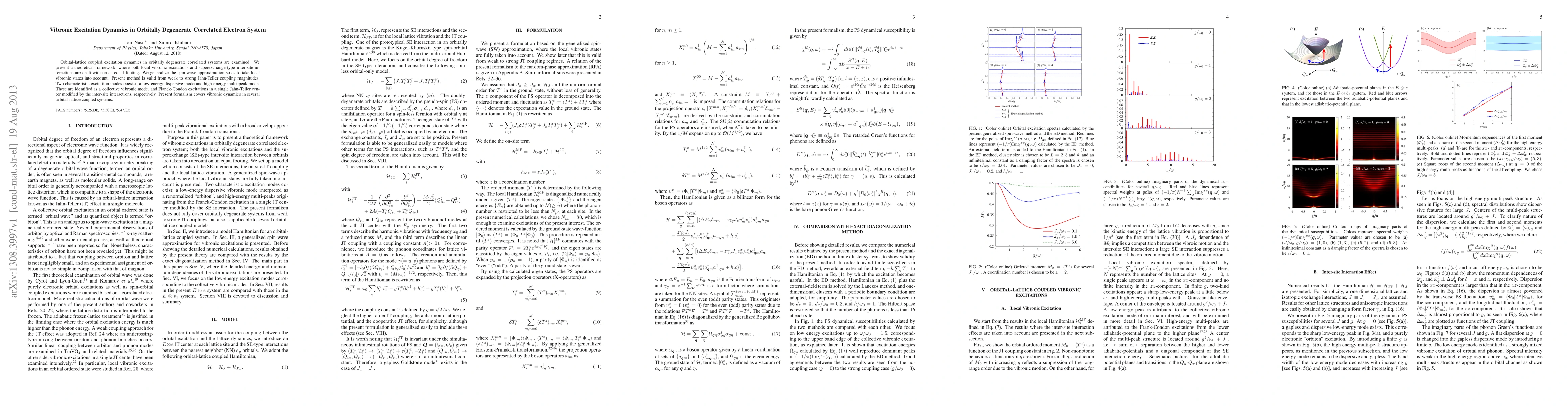 This paper develops a theoretical framework to study vibronic excitation dynamics in orbitally degenerate correlated electron systems, accounting for both local vibronic states and inter-site interactions. It identifies two excitation modes: a low-energy collective vibronic mode and a high-energy multi-peak mode influenced by inter-site interactions.