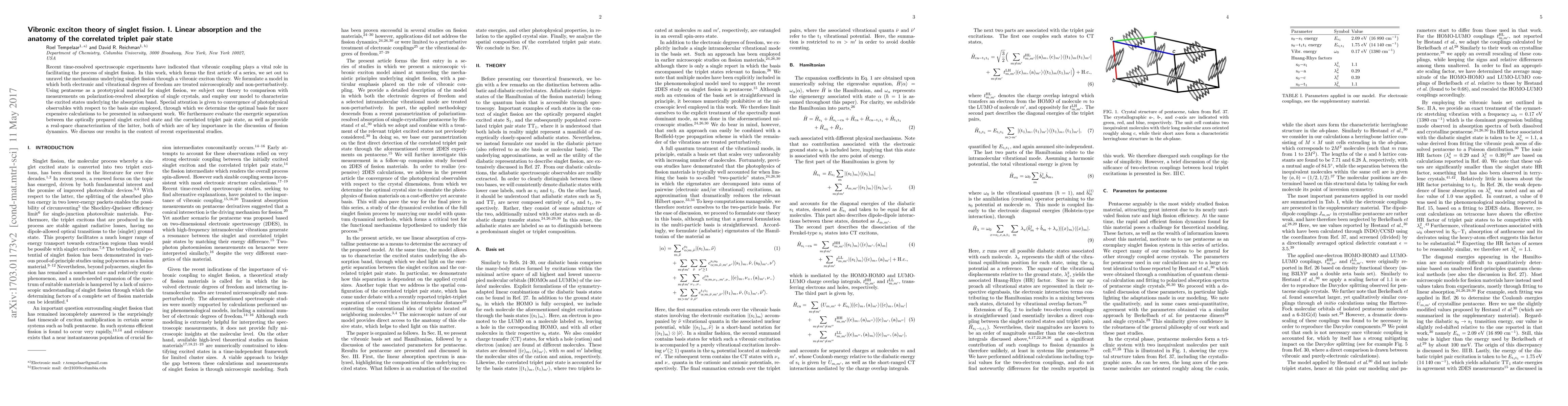 This paper develops a vibronic exciton theory to elucidate the mechanisms of singlet fission, focusing on the role of vibronic coupling. It formulates a comprehensive model to describe both electronic and vibrational states, applying it to pentacene and comparing it with polarization-resolved absorption measurements to characterize the correlated triplet pair state and its energetic separation from the singlet excited state.