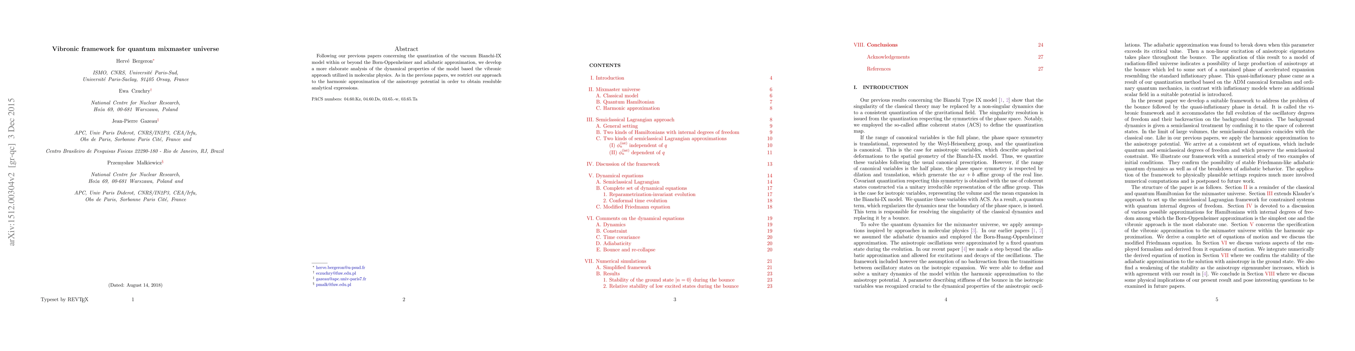 Following our previous papers concerning the quantization of the vacuum Bianchi-IX model within or beyond the Born-Oppenheimer and adiabatic approximation, we develop a more elaborate analysis of the dynamical properties of the model based the vibronic approach utilized in molecular physics. As in the previous papers, we restrict our approach to the harmonic approximation of the anisotropy potential in order to obtain resoluble analytical expressions.