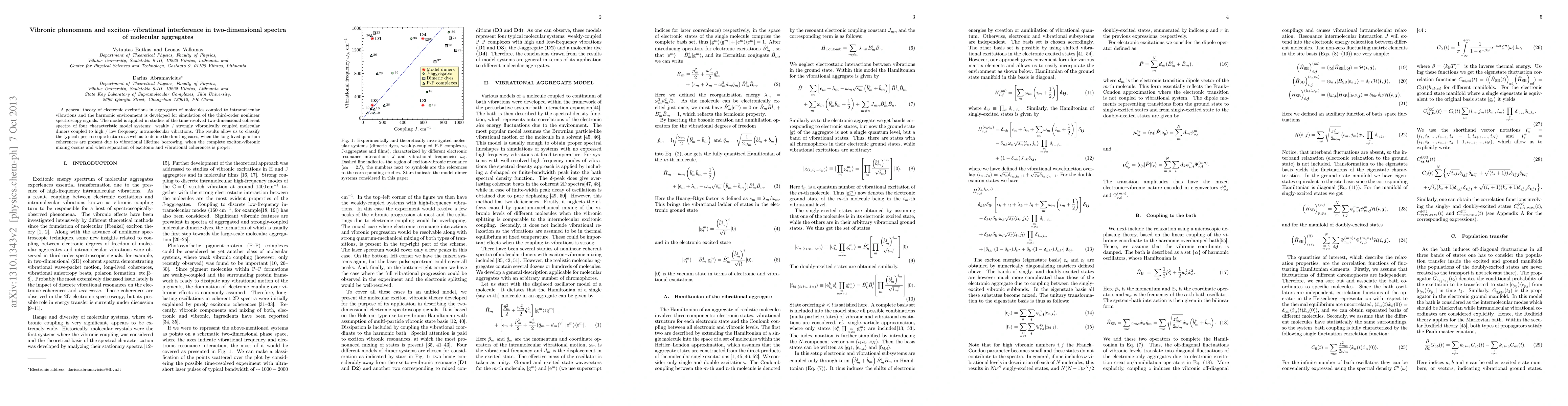 This paper develops a theoretical framework for simulating third-order nonlinear spectroscopy signals in molecular aggregates, focusing on exciton-vibrational interactions. It applies this model to analyze time-resolved two-dimensional spectra of various molecular dimers, identifying conditions for quantum coherences and exciton-vibronic mixing.