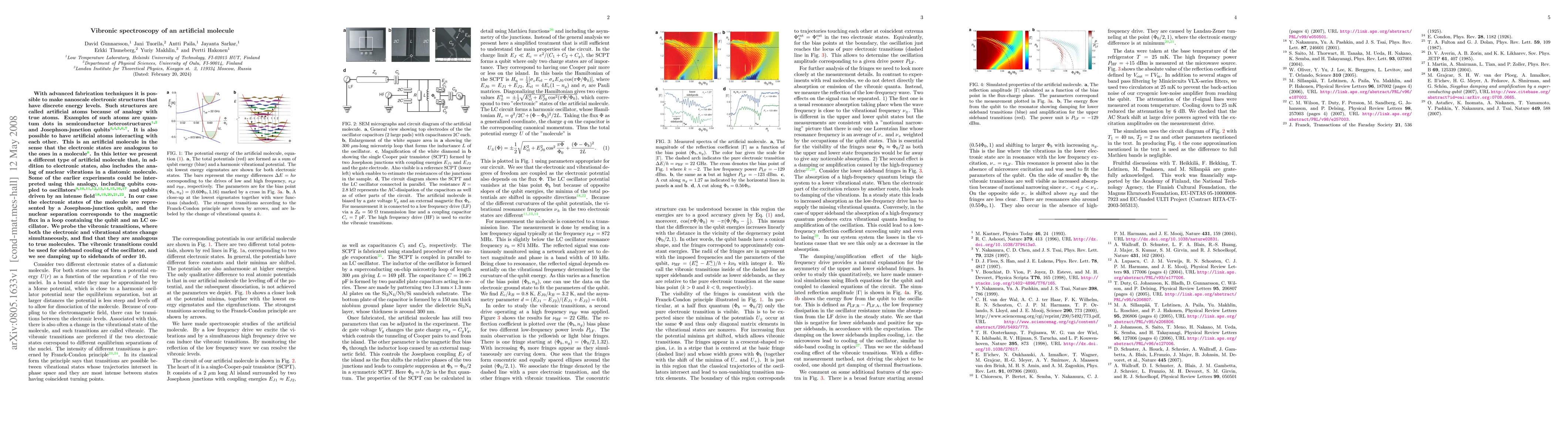 This paper investigates an artificial molecule composed of a Josephson-junction qubit and an LC oscillator, exploring its vibronic transitions where both electronic and vibrational states change. The study finds these transitions analogous to true molecular behavior, with potential applications in sideband cooling and damping up to sidebands of order 10.