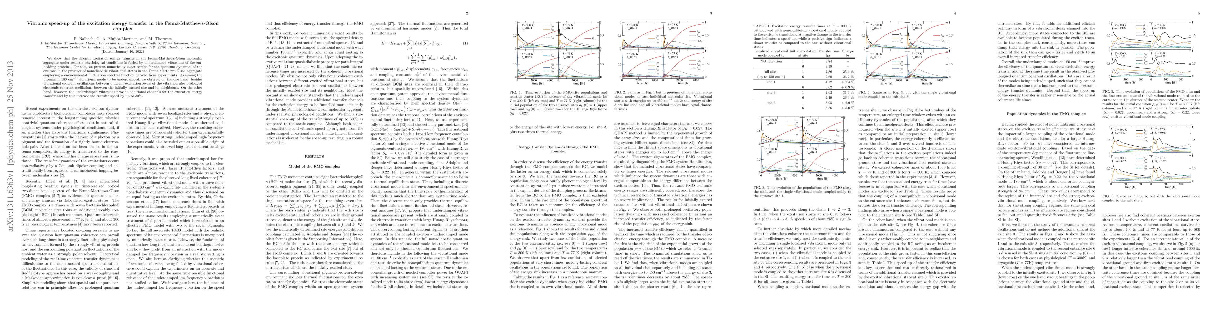 This paper demonstrates that underdamped protein vibrations significantly accelerate excitation energy transfer in the Fenna-Matthews-Olson complex, enhancing the transfer speed by up to 30% through additional vibrational channels, alongside vibrational coherent oscillations.