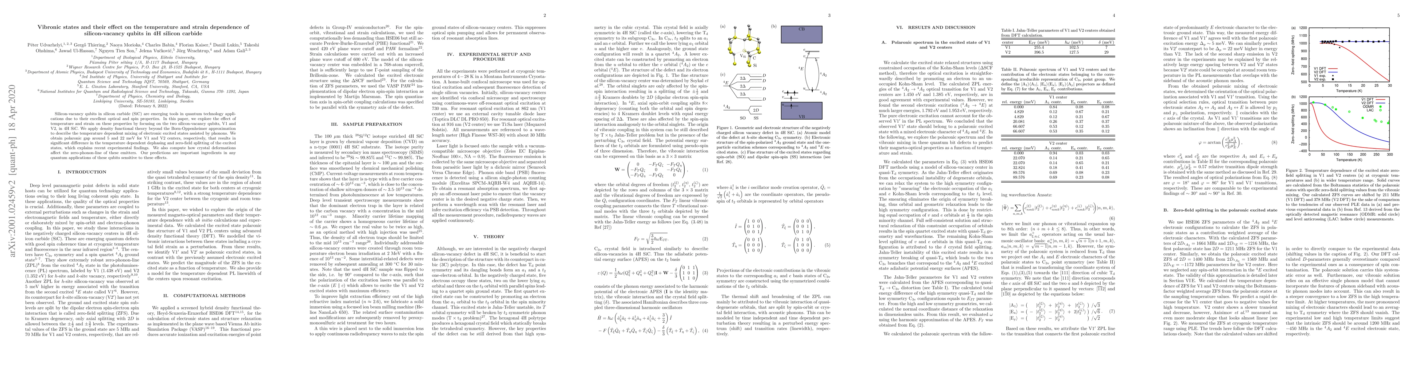 Silicon-vacancy qubits in silicon carbide (SiC) are emerging tools in quantum technology applications due to their excellent optical and spin properties. In this paper, we explore the effect of temperature and strain on these properties by focusing on the two silicon-vacancy qubits, V1 and V2, in 4H SiC. We apply density functional theory beyond the Born-Oppenheimer approximation to describe the temperature dependent mixing of electronic excited states assisted by phonons. We obtain polaronic gap around 5 and 22~meV for V1 and V2 centers, respectively, that results in significant difference in the temperature dependent dephasing and zero-field splitting of the excited states, which explains recent experimental findings. We also compute how crystal deformations affect the zero-phonon-line of these emitters. Our predictions are important ingredients in any quantum applications of these qubits sensitive to these effects.