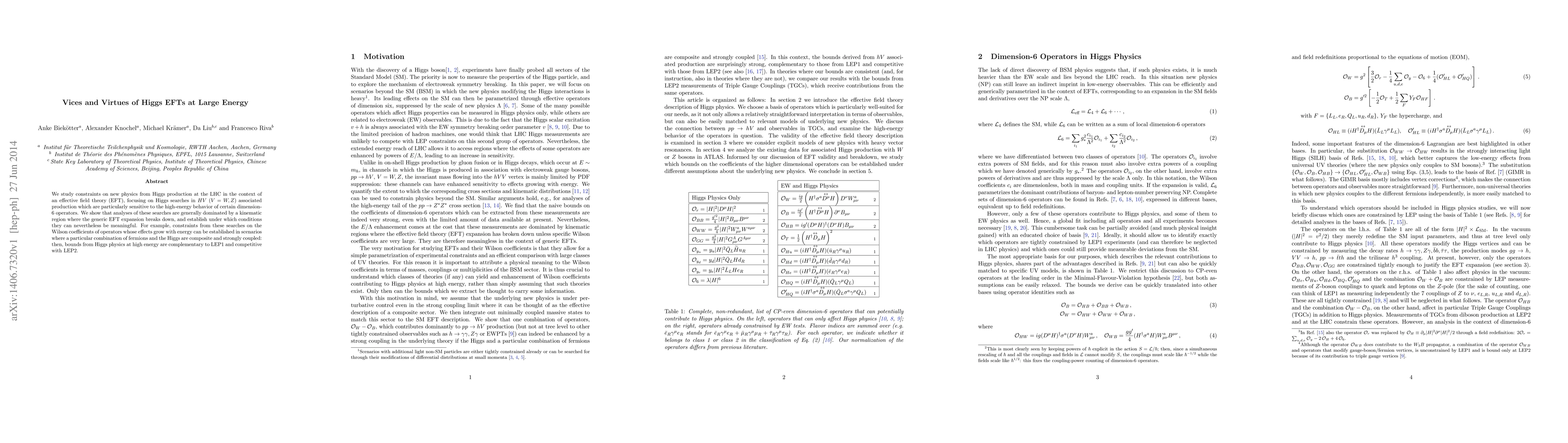 We study constraints on new physics from Higgs production at the LHC in the context of an effective field theory (EFT), focusing on Higgs searches in $HV$ ($V=W,Z$) associated production which are particularly sensitive to the high-energy behavior of certain dimension-6 operators. We show that analyses of these searches are generally dominated by a kinematic region where the generic EFT expansion breaks down, and establish under which conditions they can nevertheless be meaningful. For example, constraints from these searches on the Wilson coefficients of operators whose effects grow with energy can be established in scenarios where a particular combination of fermions and the Higgs are composite and strongly coupled: then, bounds from Higgs physics at high energy are complementary to LEP1 and competitive with LEP2.