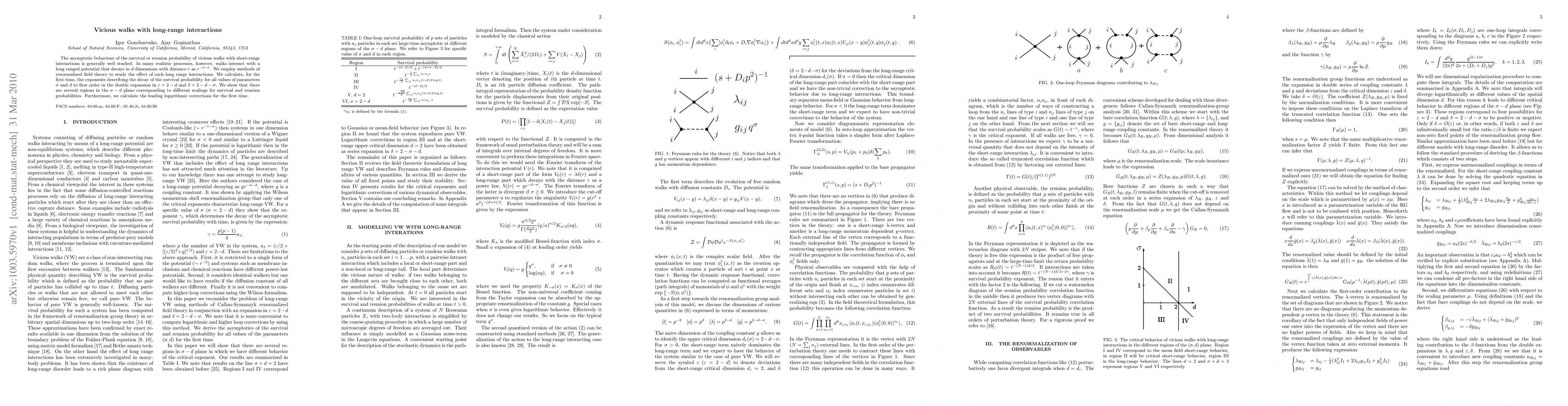This research calculates, for the first time, the survival probability decay exponents for vicious walks under long-range interactions in d dimensions, using renormalized field theory. It identifies distinct scaling regions in the σ-d plane for survival and reunion probabilities, and also determines leading logarithmic corrections.