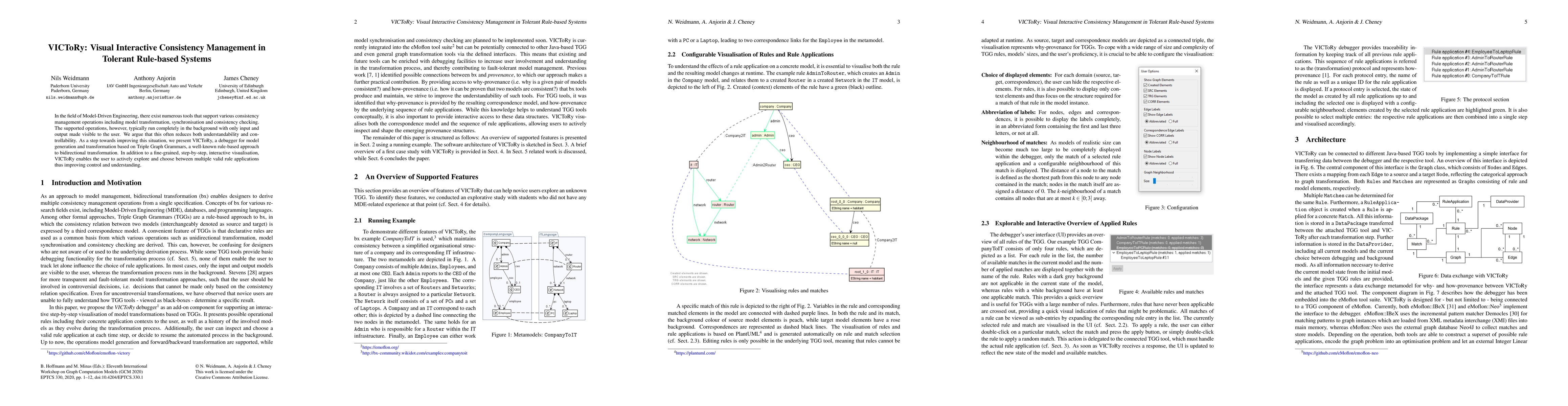 VICToRy is a debugger for model generation and transformation using Triple Graph Grammars, offering interactive visualization and user control over rule applications to enhance understandability and manageability in Model-Driven Engineering.