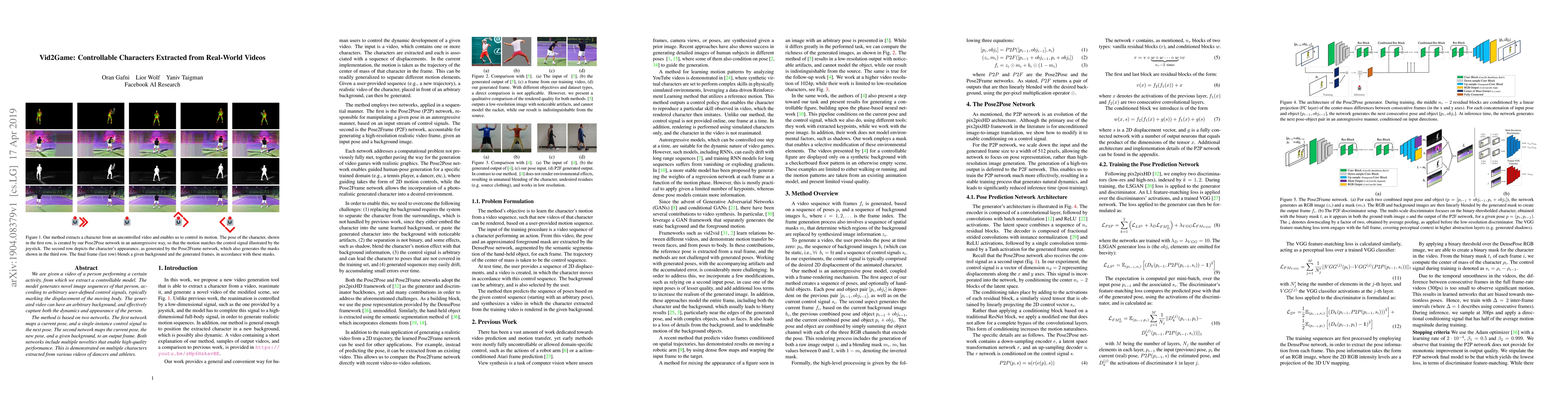 Researchers developed a system to extract controllable characters from real-world videos, allowing users to create novel image sequences with arbitrary control signals. The method uses two networks that can capture both dynamics and appearance of the person, demonstrating high-quality performance on various characters.