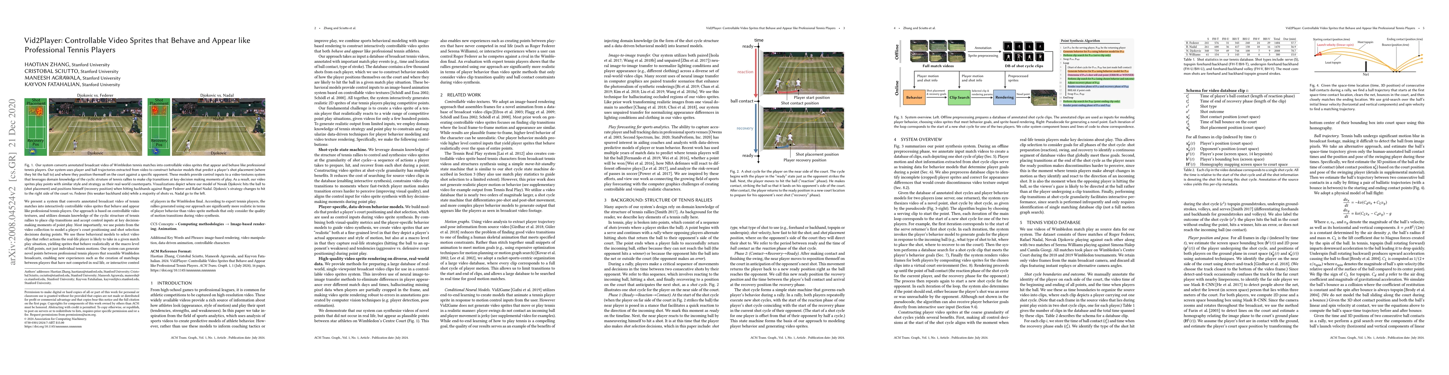 Vid2Player converts annotated tennis match videos into interactive video sprites that mimic professional players' behavior and actions, using domain knowledge to model realistic player decisions and movements. Expert feedback indicates these sprites generate more realistic player behavior compared to traditional methods.