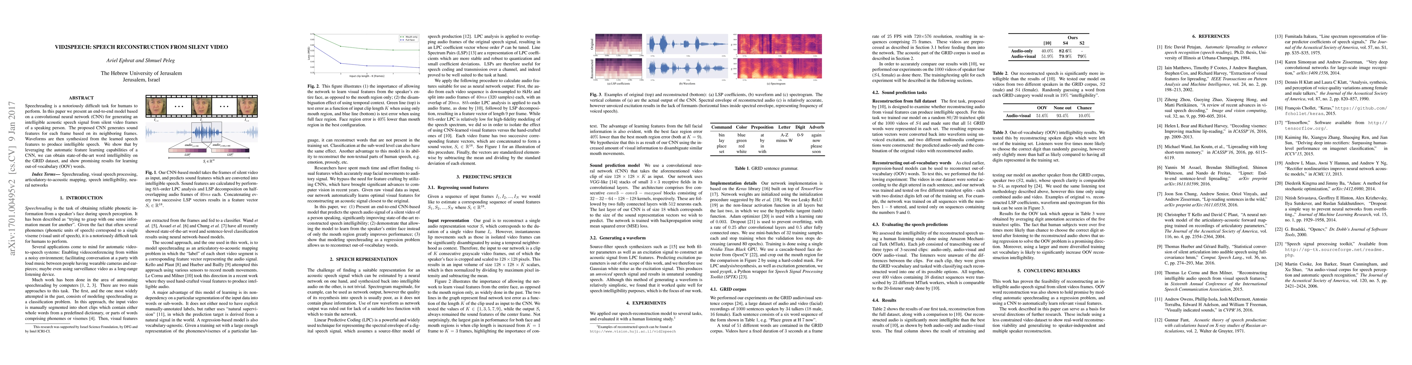 Speechreading is a notoriously difficult task for humans to perform. In this paper we present an end-to-end model based on a convolutional neural network (CNN) for generating an intelligible acoustic speech signal from silent video frames of a speaking person. The proposed CNN generates sound features for each frame based on its neighboring frames. Waveforms are then synthesized from the learned speech features to produce intelligible speech. We show that by leveraging the automatic feature learning capabilities of a CNN, we can obtain state-of-the-art word intelligibility on the GRID dataset, and show promising results for learning out-of-vocabulary (OOV) words.