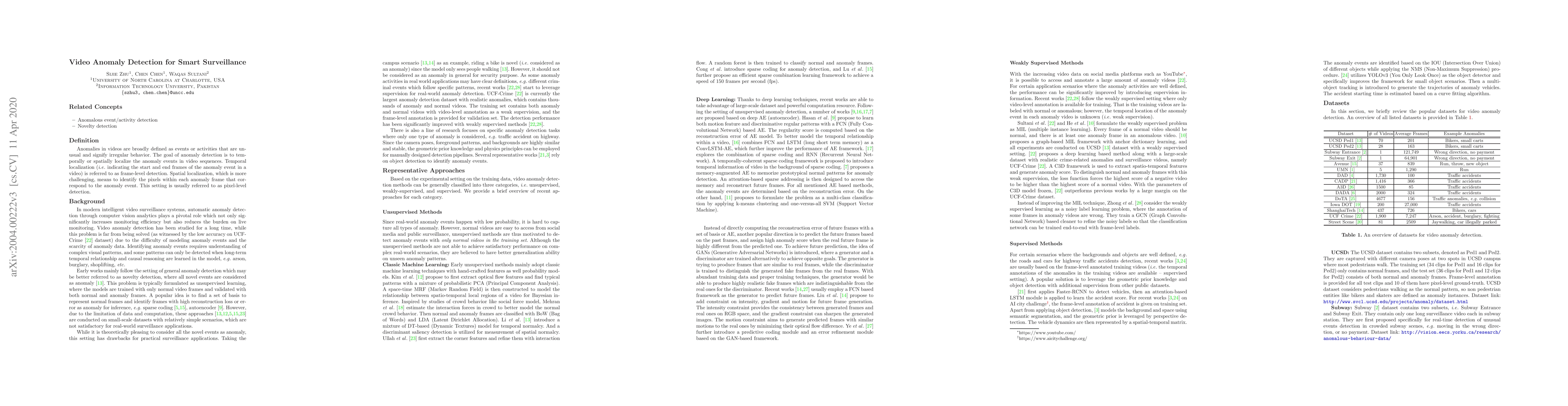 This paper reviews recent advancements in video anomaly detection for smart surveillance, focusing on both frame-level and pixel-level detection methods to identify unusual activities. It also outlines potential future research directions in this field.