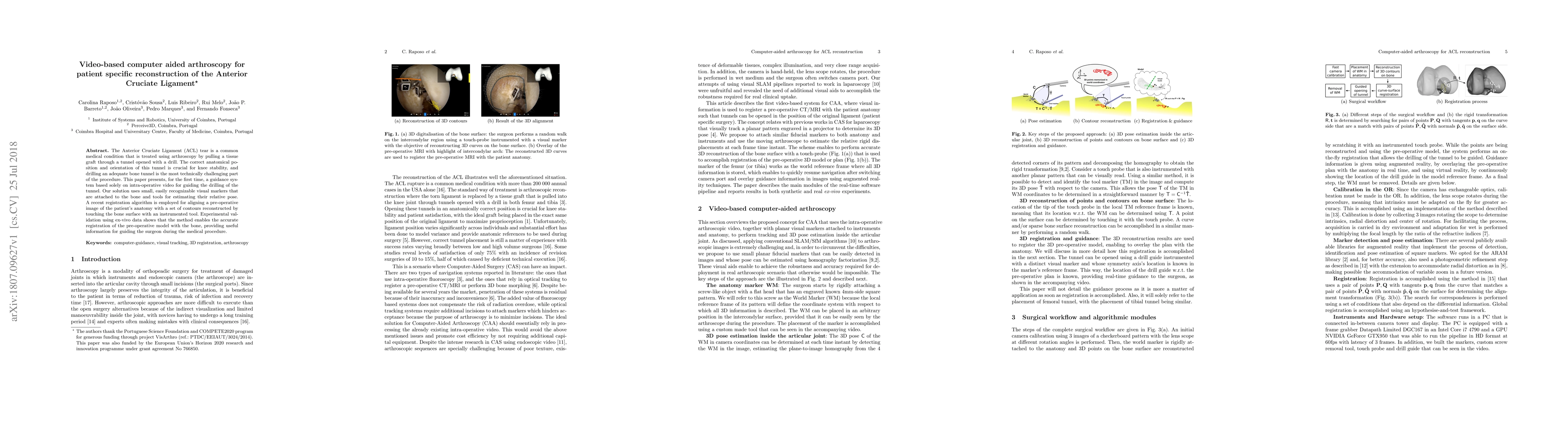 This paper introduces a video-based computer-aided system for guiding the drilling of tunnels during ACL reconstruction arthroscopy, using visual markers and a registration algorithm to align pre-operative images with intra-operative bone contours, validated for accuracy with ex-vivo data.