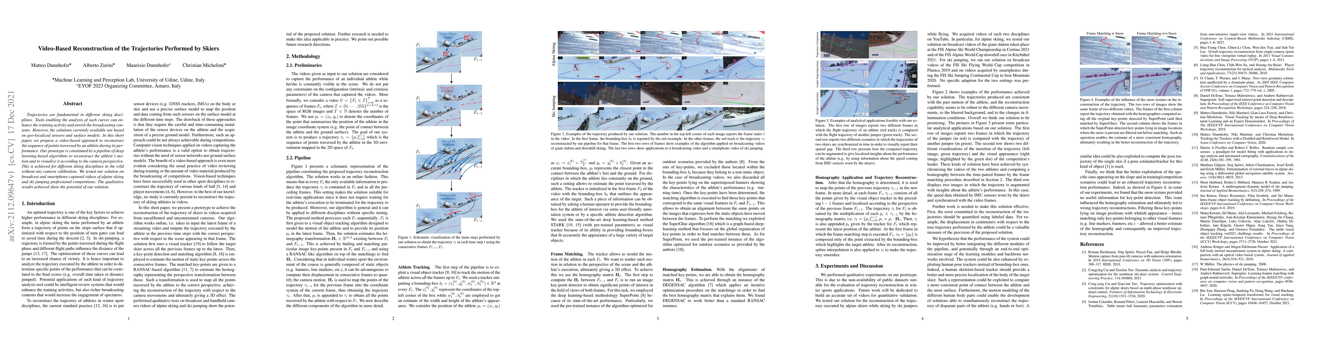 This paper introduces a video-based method to reconstruct skiers' trajectories in various disciplines, utilizing deep learning algorithms for motion reconstruction and visualization from uncalibrated camera footage. The approach was tested on professional alpine skiing and ski jumping videos, demonstrating promising results for training and broadcasting enhancements.
