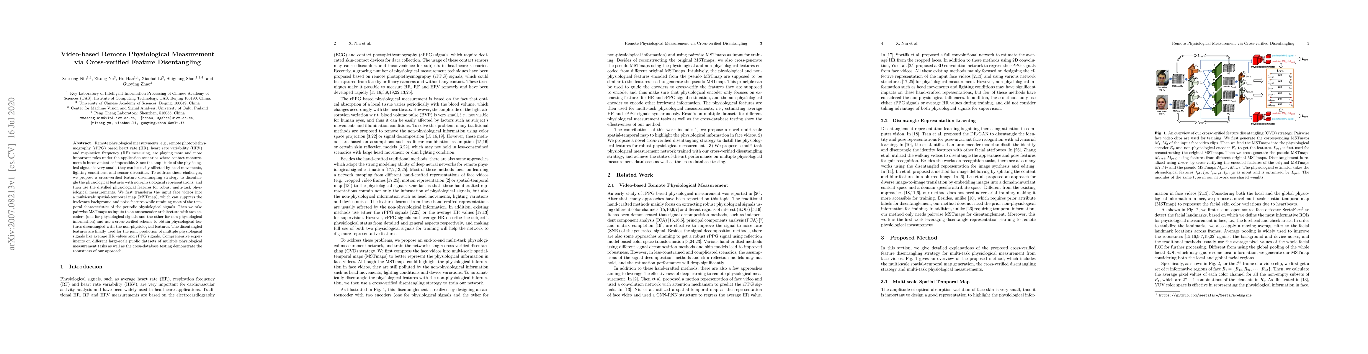 This paper proposes a cross-verified feature disentangling strategy to extract robust physiological signals from video-based remote measurements, addressing challenges like head movements and lighting conditions. The method uses an autoencoder with dual encoders to separate physiological features from non-physiological noise, achieving accurate multi-task physiological measurements.