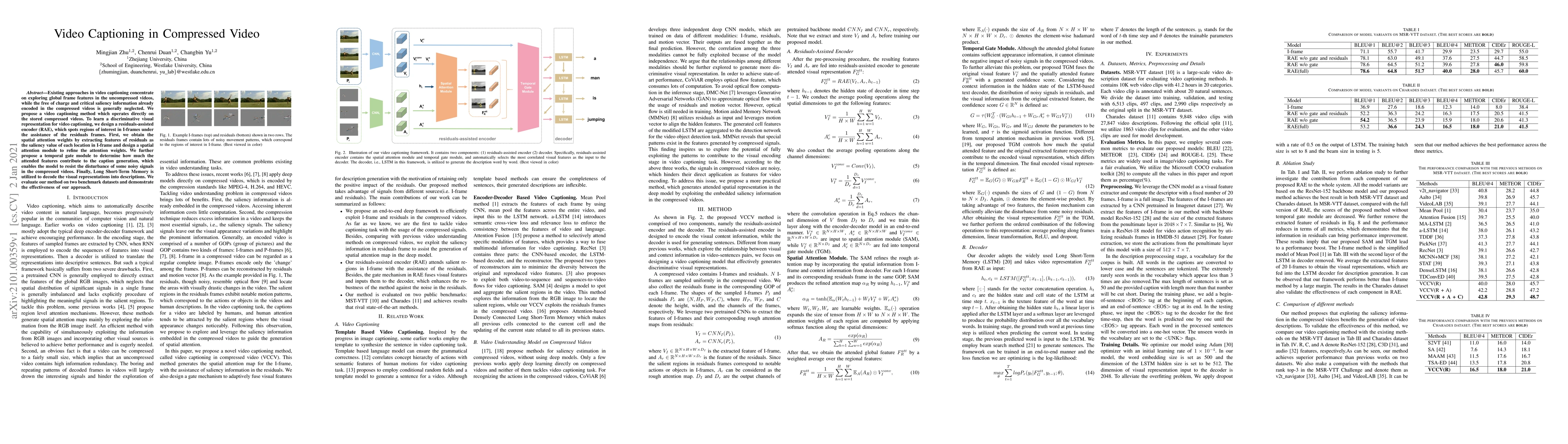 This paper proposes a video captioning method that operates directly on compressed videos, utilizing a residuals-assisted encoder (RAE) to extract discriminative visual representations. The RAE leverages spatial attention weights derived from residuals frames and a temporal gate module to enhance caption generation, demonstrating effectiveness on benchmark datasets.