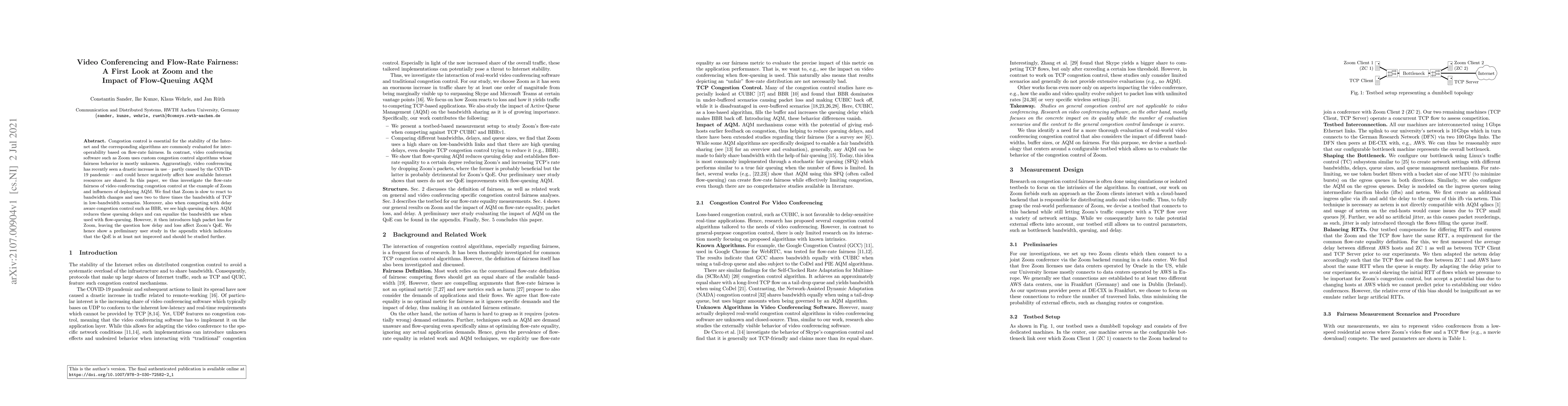 This paper examines the flow-rate fairness of Zoom's congestion control, revealing its slow bandwidth adaptation and high bandwidth usage compared to TCP. The study finds that while Active Queue Management (AQM) can reduce queuing delays, it also increases packet loss, negatively impacting Zoom's quality of experience (QoE), as indicated by a preliminary user study.
