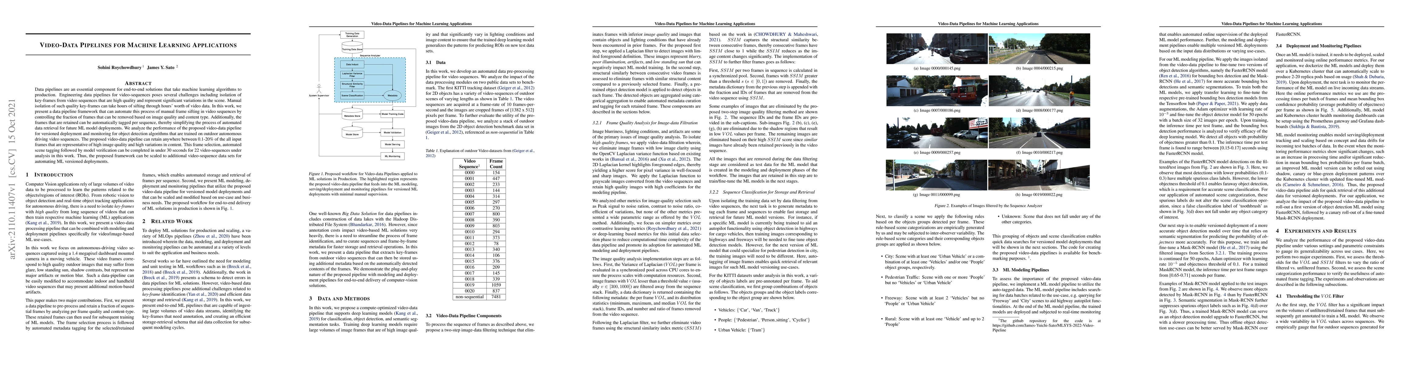 A novel two-step video data pipeline was proposed to filter high-quality frames while retaining variations in content, enabling efficient machine learning model training.