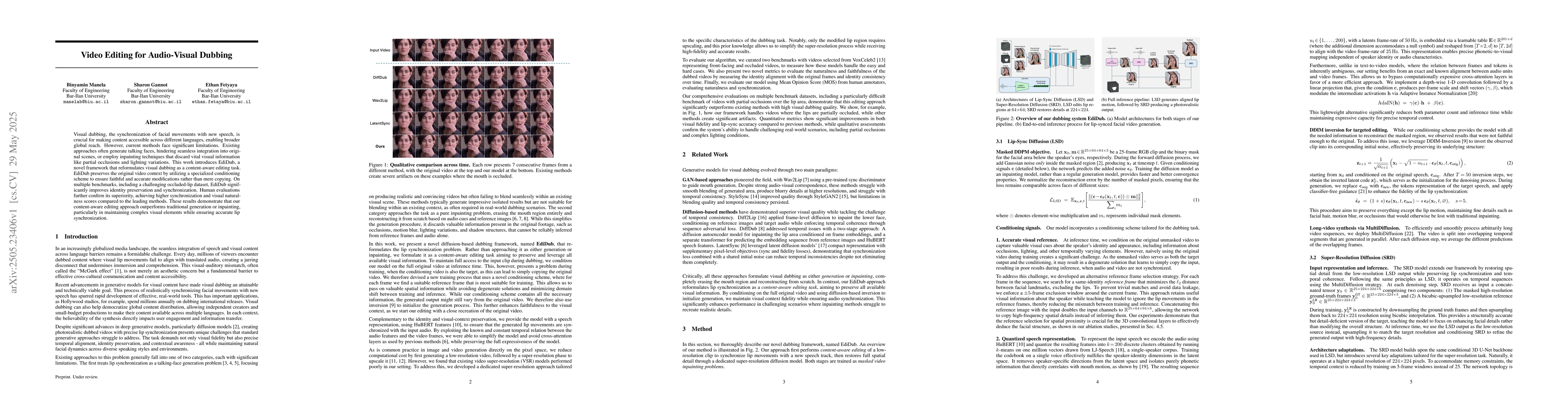 The paper introduces EdiDub, a novel framework for visual dubbing that reformulates the task as content-aware editing, preserving original video context using a specialized conditioning scheme.