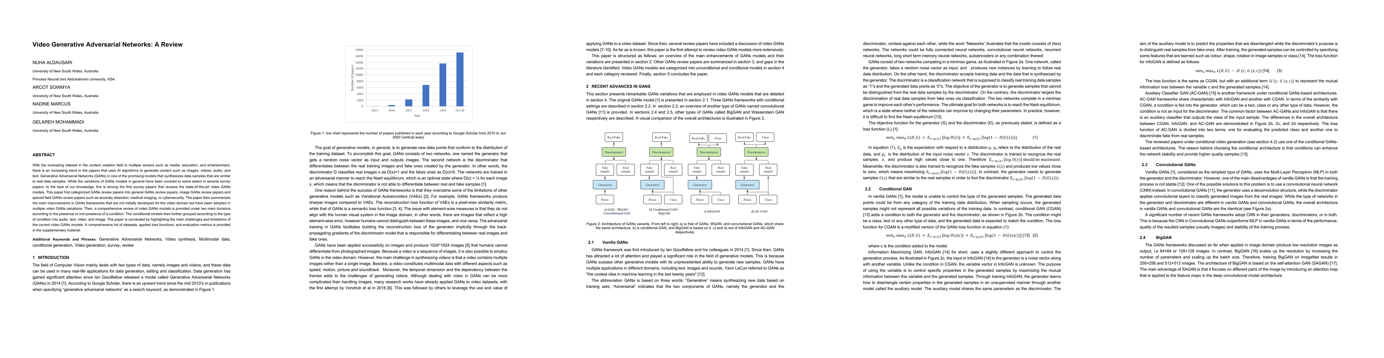 This paper reviews state-of-the-art video Generative Adversarial Networks (GANs) models, categorizing existing GANs reviews and summarizing improvements adopted for video generation. It provides a comprehensive survey of video GANs, highlighting challenges and limitations, and offers supplementary material on datasets, loss functions, and evaluation metrics.